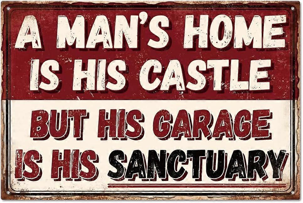 Family Words Tin Sign Garage Vintage Metal Tin Sign A Man's Home Is His Castle But His Garage Is His Sanctuary Funny Wall Decor Tin Signs 128inch for