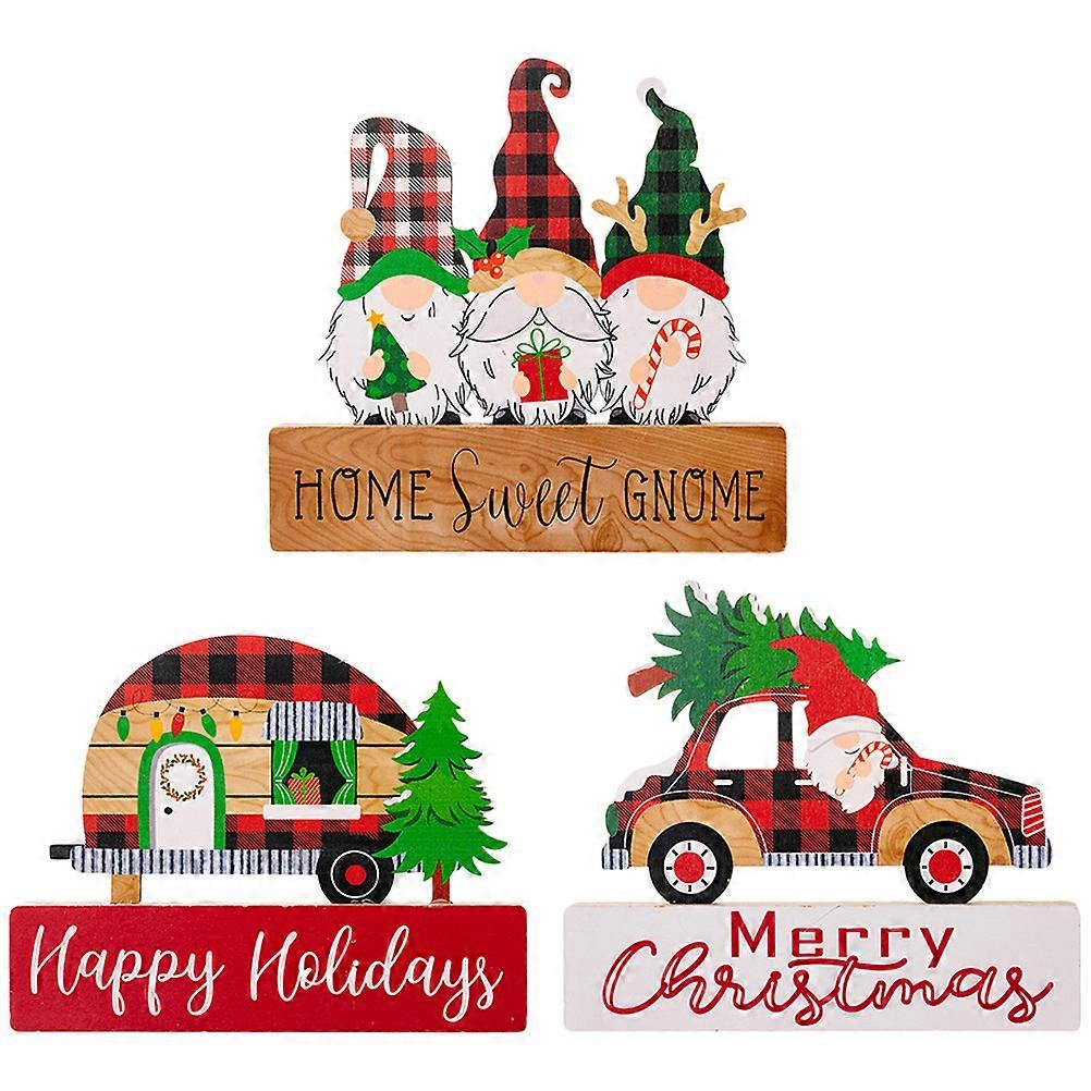 Wooden Christmas Table Centerpiece Decoration For Family And Friends Indoor Outdoor 15.5X15CM 3Pcs