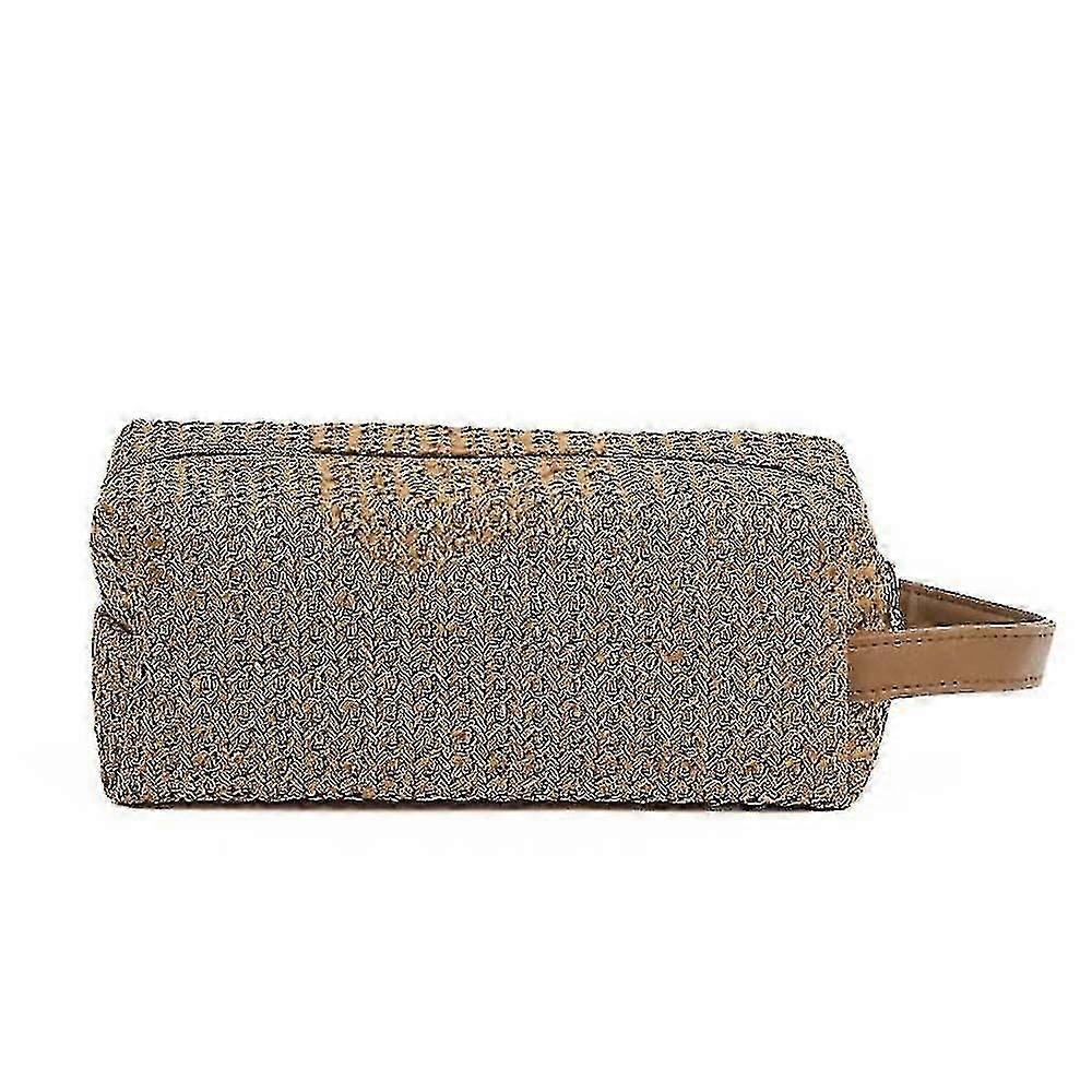 Capacity Pp Grass Travel Cosmetic Organizer Storage Pouch Wash Bag Makeup Bag. (brown)