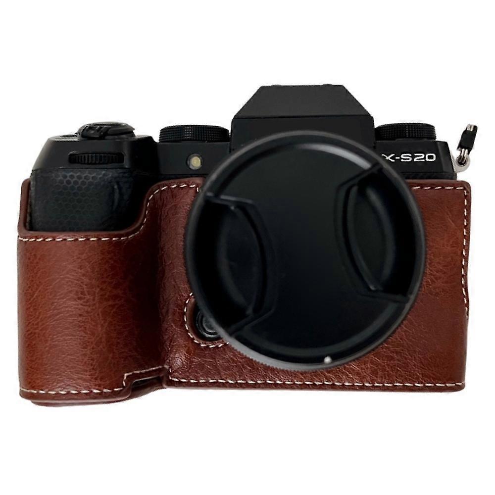 For Fujifilm X-S20 Camera Case Buffalo Texture PU Leather Half Body Camera Cover with Battery Openin