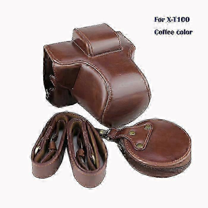 New Luxury Pu Leather Case Camera Bag For Fujifilm X-t100 Fuji Xt100 X-t200 Xt200 Cover With Battery Opening +shoulder Strap