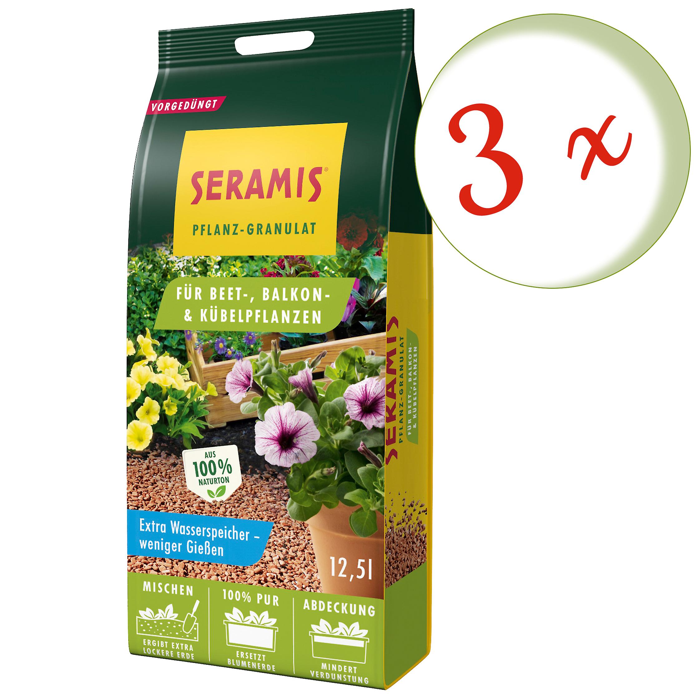 Produktbeschreibung:Das SERAMIS® Pflanz-Granulat für Beet-, Balkon- und Kübelpflanzen eignet sich hervorragend zum Mischen mit allen Blumenerden und verbessert diese aufgrund seiner besonderen Eigenschaften deutlich. Je nach Mischungsverhältnis sind die physikalischen Eigenschaften unterschiedlich stark ausgeprägt. Die poröse Beschaffenheit der Tonkörnchen sorgt für eine stabile, aber gleichzeitig lockere Struktur. Das SERAMIS® Pflanz-Granulat speichert viel Wasser und Nährstoffe und sorgt für eine optimale Belüftung der Wurzeln. Es ist für alle Balkon-, Terrassen- und Beetpflanzen, außer Moorbeetpflanzen,geeignet. Für einen einfachen und guten Start mit Ihren Pflanzen ist es bereits für etwa vier Wochen vorgedüngt.Anwendung:für: alle ZimmerpflanzenEigenschaften:Das SERAMIS® Pflanz-Granulat für die Outdoor-Anwendung Ideal für alle Beet-, Balkon- & Kübelpflanzen Optimaler Wasserspeicher - weniger gießen Hergestellt aus natürlichem Ton Vorgedüngt für eine direkte Nährstoffversorgung Ausgezeichnete Sauerstoffversorgung Keine Verdichtung, sehr gute Wiederbenetzbarkeit Zum Mischen mit allen Blumenerden, 100 % pur oder Abdeckung Verpackung mit Griff für besseren TragekomfortGebrauchsanweisung: Mischen mit Erde:Durch die Mischung von Blumenerde mit SERAMIS® Pflanz-Granulat wird diese aufgelockert, die Wurzelballen besser durchlüftet und die Wasser- und Nährstoffspeicherkapazität nachhaltig optimiert. Wir empfehlen eine Mischung mit einem Anteil von mind. 10 % SERAMIS® Pflanz-Granulat. Um den Wasserspeicher weiter zu vergrößern, kann der Anteil beliebig erhöht werden.Mischungsverhältnis 1 zu 10: 6 l Pflanz-Granulat ergeben 60 l Erden-Mix; 12,5 l ergeben 125 l Erden-MixAbdecken:Durch das Abdecken des Erdsubstrates mit einer ca. 3 cm hohen Schicht mit SERAMIS® Pflanz-Granulat kann ein schnelles Austrocknen der Erde verhindert werden. Die helle Farbe des Granulats verringert starke Erwärmung bei intensiver Sonneneinstrahlung. Dieser Effekt wirkt sich gerade in den warmen Sommermonaten günstig auf die Pflanzenentwicklung aus. Die Abdeckung reduziert zudem den Trauermückenbefall.100 % Pur:Das vorgedüngte SERAMIS® Pflanz-Granulat ersetzt herkömmliche Blumenerde und reduziert den Gießaufwand dank der optimalen Speicherfunktion.Um- und Eintopfen:Die Pflanze vorsichtig austopfen, den Wurzelballen leicht auflockern und überschüssige Erde sowie abgestorbene Wurzelteile entfernen. Den neuen Topf bzw. Pflanzkasten so auswählen, dass dieser deutlich größer als der alte ist. Damit überschüssiges Regenwasser abfließen kann, ist ein Gefäß mit Drainage zu wählen. Löcher im Gefäßboden mit Kies oder einer Tonscherbe abdecken, damit nur das überschüssige Wasser, nicht aber das Granulat ausgespült wird. Hinweis: Gefäße mit Ablauf sollten auf einem Untersetzer stehen, da beim Gießen loser Tonstaub ausgespült werden kann, der zu unerwünschten Farbspuren auf dem Boden führen könnte. Den Topf bzw. die Pflanzkästen, Pflanzschalen und Kübel bis etwa zur Hälfte wahlweise pur mit SERAMIS® Pflanz-Granulat oder gemischter Blumenerde füllen, den Wurzelballen der einzutopfenden Pflanze positionieren und gleichmäßig auffüllen bis der komplette Wurzelballen bedeckt ist. Den Wurzelballen leicht andrücken und die Pflanze mit Wasser angießen bis die Erde bzw. das Granulat gut feucht ist.Gießen und Pflege:Zur sicheren Ermittlung des idealen Gießzeitpunktes in Pflanzgefäßen empfehlen wir den SERAMIS® Gießanzeiger. Die Standortansprüche der jeweiligen Pflanzen hinsichtlich Licht und Temperatur sind zu berücksichtigen. Das vorgedüngte SERAMIS® Pflanz-Granulat versorgt die Pflanzen etwa 4 Wochen, danach sollte nach Gebrauchsanleitung weitergedüngt werden.Kultursubstrat: unter Verwendung von Ton, NPK-Dünger. Enthält wenig organische Substanz.pH-Wert (CaCl2) 6,2Salzgehalt (KCl) 0,8 g/lAusgangsstoffe: 100 % Rohton, mineralischer NPK-DüngerPflanzenverfügbare (lösliche) Nährstoffe:250 mg/l Stickstoff N (CaCl2)350 mg/l Phosphat P2O5 (CAL)300 mg/l Kalium K2O (CAL)Lagerungshinweise:Kühl, trocken, verschlossen und vor Sonne geschützt lagern.Packungsgröße: 12,5 Liter im Beutel / SackAnwendung durch nichtberufliche Anwender zulässig.Diese Produktinformationen ersetzen nicht die Beachtung der Gebrauchsanweisung und erheben keinen Anspruch auf Vollständigkeit.
