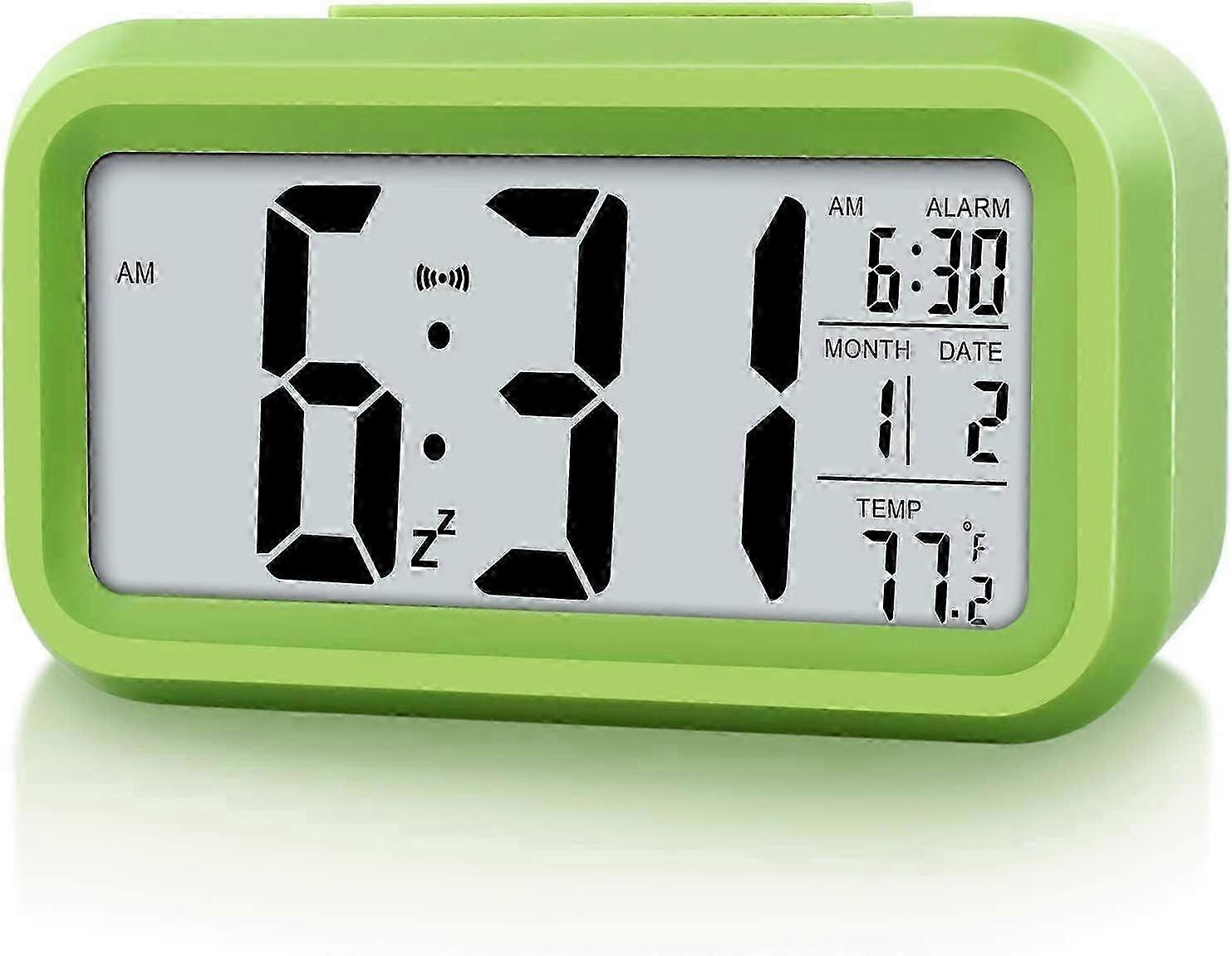 Digital Timepiece for Heavy Sleepers, Battery Operated with Indoor Temperature and Easy Setup, Travel Alarm Clock with Snooze and Night Light (Green,