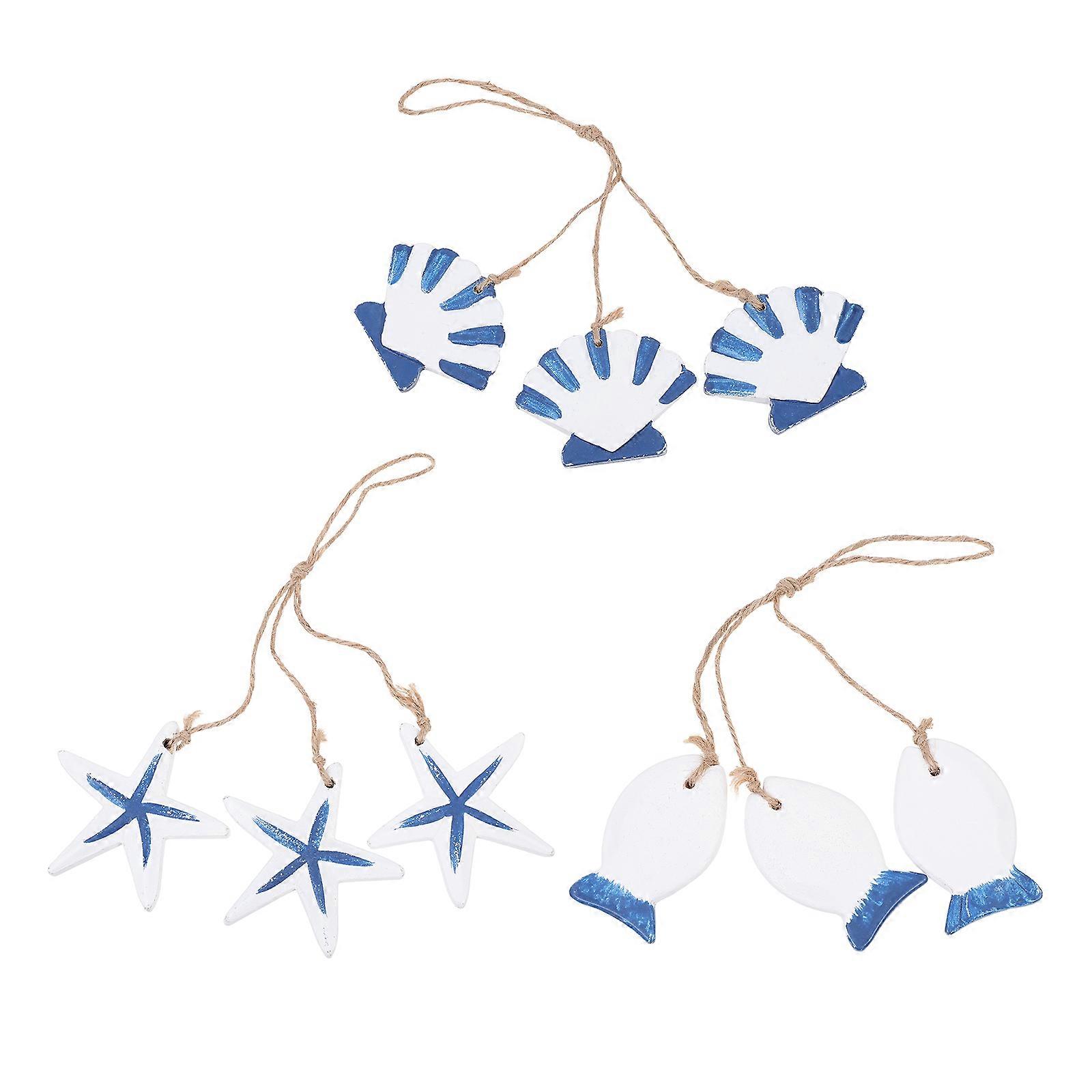Coastal Decor For Bedroom 3Pcs Nautical Atmosphere Wood Fish Shape Hangings With Jute Rope Perfect For Home Decor 7X5.5Cm