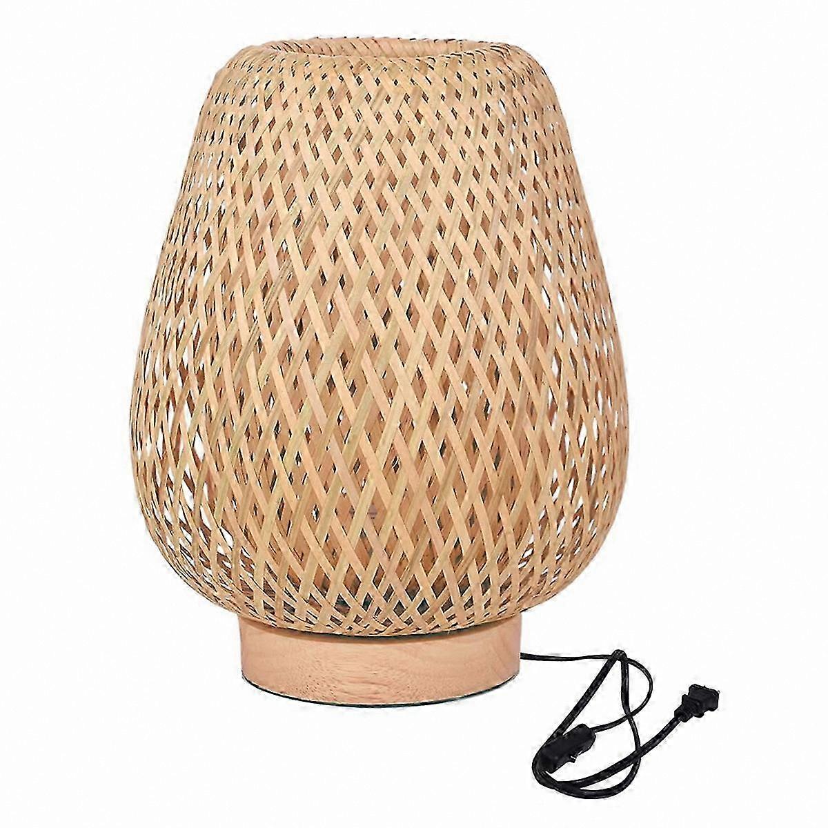Natural Bamboo Table Lamp with Wooden Base for Bedroom Night Light