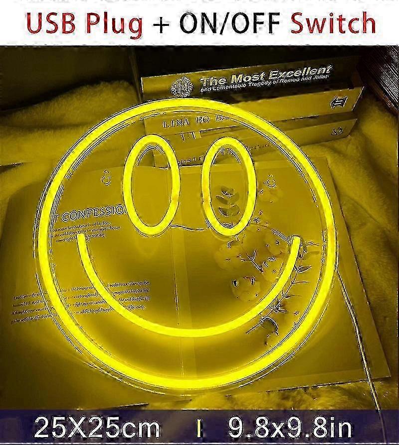 Color Temp(K) : 2700K Features : Smile face Neon Sign Color Temperature : Warm White (2700-3500K) Model Number : L2003-04GM Luminous Flux : LUMEN Beam Angle() : 180 Average Life (hrs) : 10000H Warranty : 1 Application : Indoor Certification : CCC,ce,ROHS Base Type : Wedge Voltage : 6V Item Type : Neon Bulbs Certification : CE,CCC Smile Face S : 25x25cm(9.8x9.8inch) Smile Face L : 30x30cm(11.8x11.8inch) Voltage : 5V Plug Type : USB Feature 01 : Neon Lights Feature 02 : Neon Sign Feature 03 : Neon Led Sign Feature 04 : Neon Lamps Feature 05 : Neon Lighting Note: Due to the light and screen setting difference, the item's color may be slightly different from the pictures. Please allow slight dimension difference due to different manual measurement.