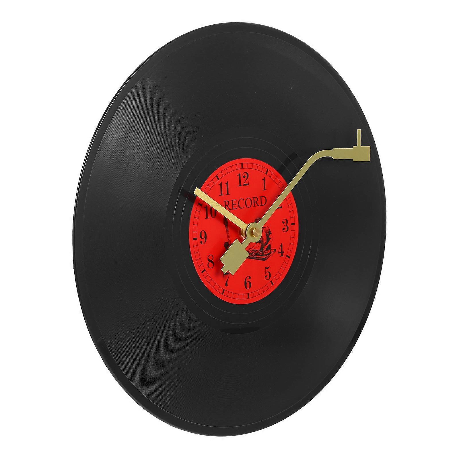 Bedroom Clock Creative Vinyl Record Wall Clock Retro Style Living Room Decor Round Shape Red 1Pack
