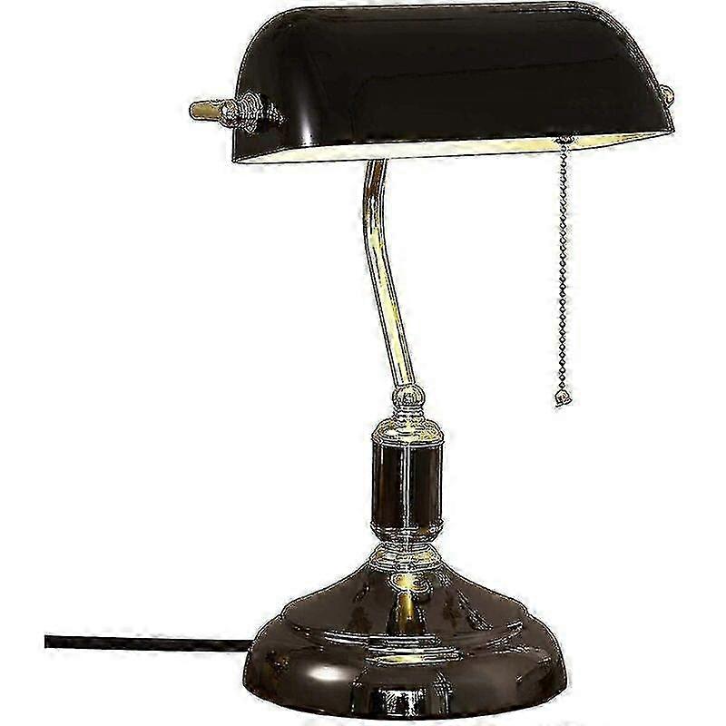 Vintage desk lamp with pull switch for bedroom, black glass lampshade