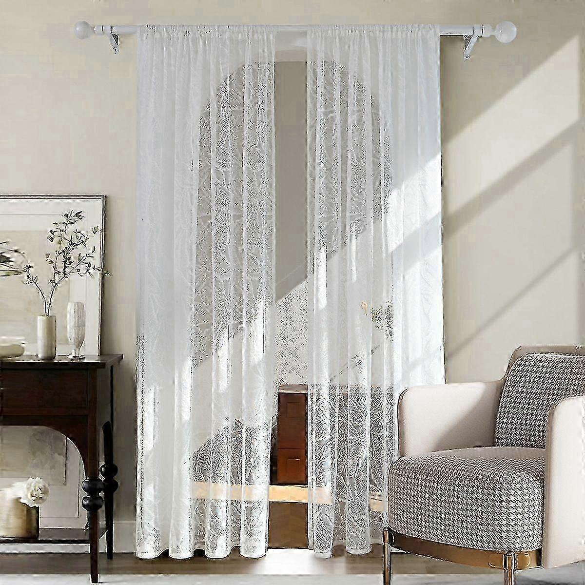 2pcs White Woven Lace Sheer Curtains for Bedroom Fish Tail Threaded Door Curtain Window Drapes