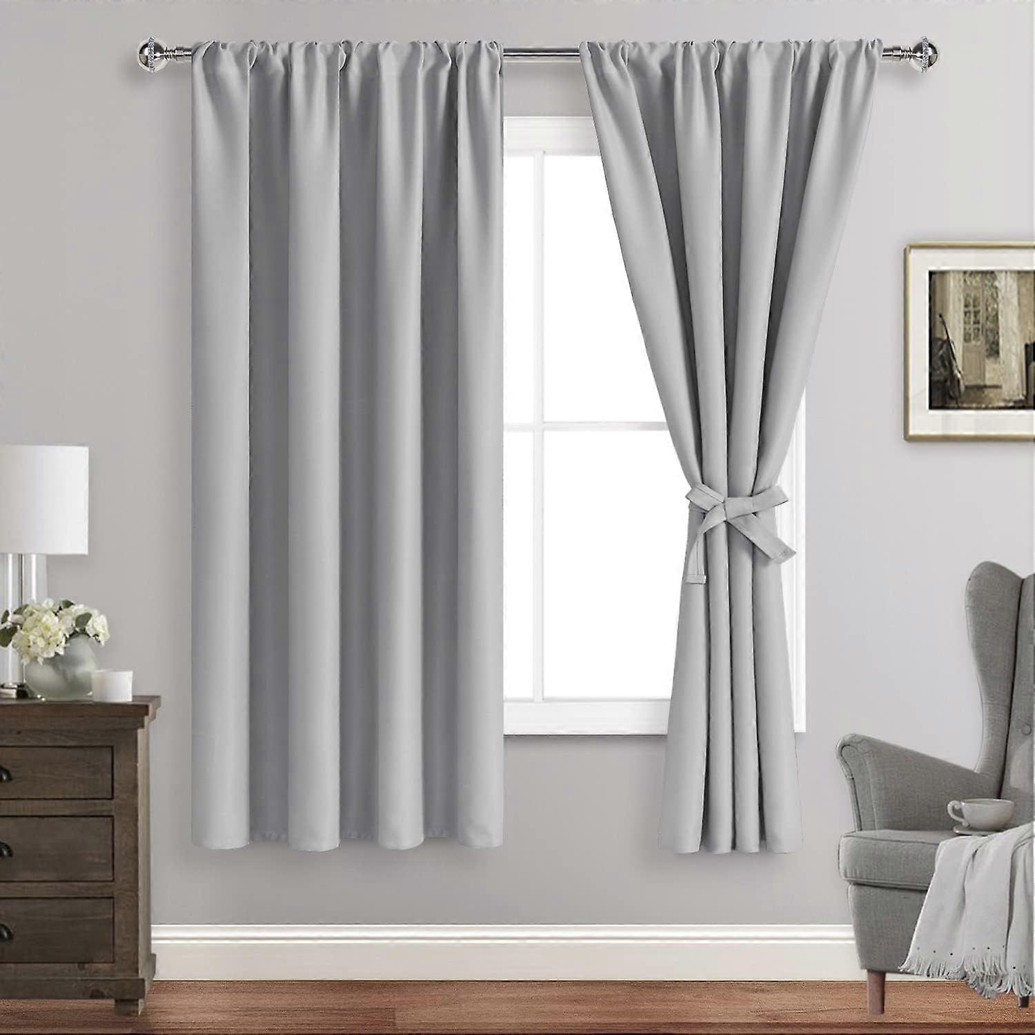 Thermal Insulation And Energy Efficiency: Our room darkening curtains balance temp indoors, insulating summer heat and winter chill, reducing energy waste & bills. Perfect for bedrooms, living rooms, kids room and nursery room Package Includes2 blackout curtains with tiebacks, each panel measures 42" wide by 63" long. Each panel is constructed with 3 inches rod pocket on top, fitting the most standard rods in the market. Making the curtains easy to install and slide Easy to care: Machine washable in cold water, gentle cycle, tumble dry on low, do not bleach, low temperature ironing if needed. Colors wont fade away with time goes by Premium Blackout Curtains: These curtains are crafted from premium tripleweaved microfiber fabric, effectively blocking sunlight and UV rays, providing complete darkness for better sleep, privacy, and protecting your furniture from fading Noise Reduction: These thick bedroom blackout curtains can Isolate most of the noise, create a gentle atmosphere for you to have a long, undisturbed, sweet dream. At the same time it can be used as a barrier to protect your privacy wonderfully