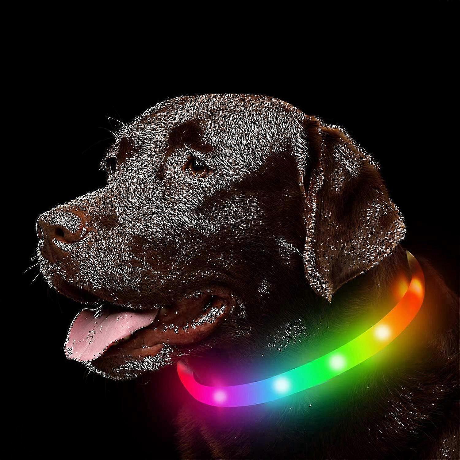 Led Dog Collar , Rechargeable Rainbow Color Changing Light Up Dog Collars, Waterproof Dog Lights Make Pet Visible And Safety For Night Walkingrai