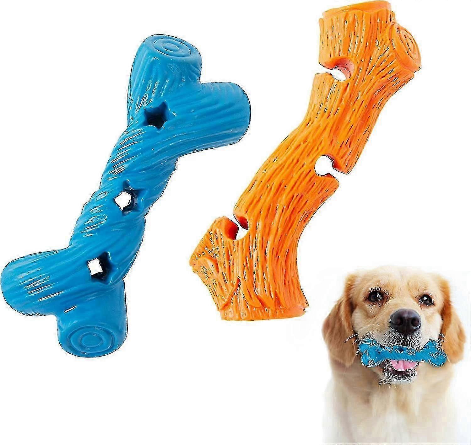 UNIQUE BRANCH MODELINGDesigned for small and medium sized dogs, these two branch modeling toys are easy to attract dogs attention. Its snack slot can instantly stimulate dogs chewing interest, giving your dog a long, happy play timeMEET DOGS NEEDS Chewing toys often help ease anxiety, avoid destructive chewing, help develop healthy chewing habits, and keep your dog physically and mentally healthyHIGH QUALITY MATERIAL Made of high-quality natural rubber, this dog chew toy is soft and toothmouth - friendly. It is durable and long lasting, making it the perfect material for dogs to chewTEETH CLEANING AND PROTECTIONThe beef-flavored chew toy satisfies dogs chewing instinct. The texture of the branch surface can effectively clean the dogs teeth, relieve gums and maintain oral hygieneSATISFACTORY CUSTOMER SERVICEIf you are not completely satisfied with the product you purchased or the product is damaged, please contact us in time. We will solve your problem within 24 hoursEffectively looses your dogs bad mood, reduce anxiety or loneliness when you are not at home Product parameters Product Name: Dog chew toy Size: 5.7*2.2 inch material: natural rubber Product Weight: 1*0.21lb 1*0.28lb Scope of application : Small and medium dog Product list: 2x Durable dog toys Features: 1.This interactive dog toy can easily attract your dogs attention, reduces boredom and destructive behavior through healthy play and exercise, developing and maintaining your dogs physical alertness. 2. Love it and give it the best, safe materials, beautiful,all details turn to your pets design. has been focusing on making high-quality dog toys for years, and provide customers with quality service.