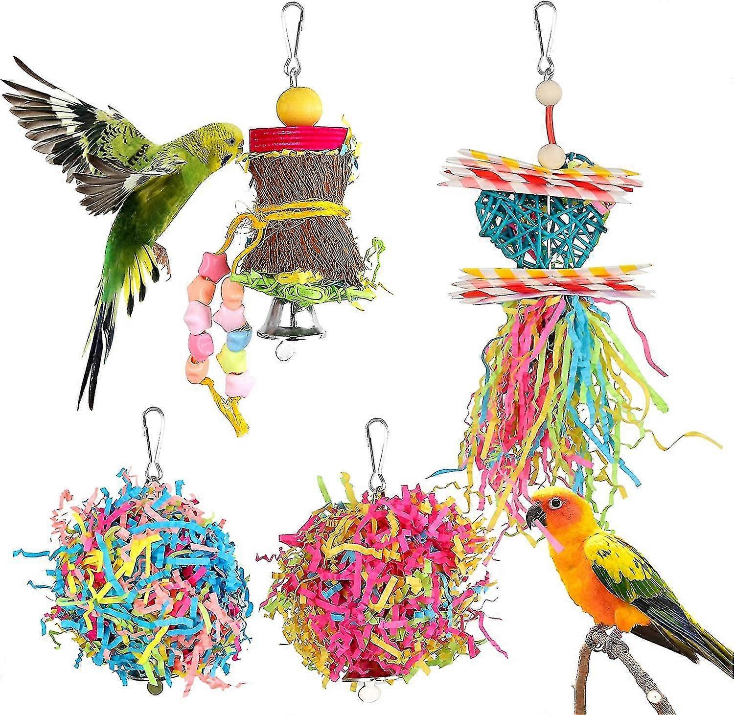 4 Pack Bird Shredder Toys for Small Parrots Chewing and Foraging, Hanging Toys for Small Birds like Parakeets, Lovebirds, and Cockatiels