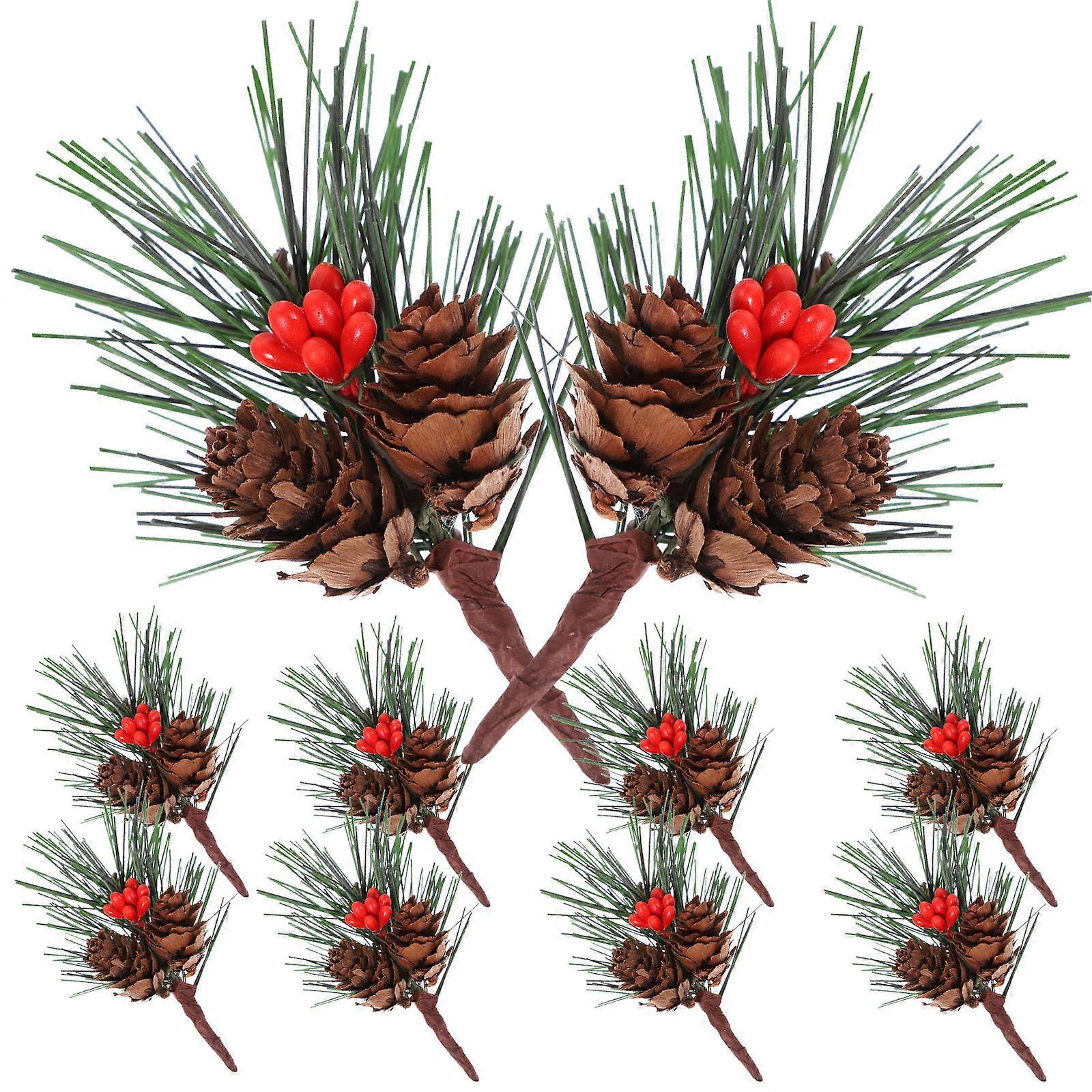 Small Berry Picks Artificial Pine Stems Trees For Christmas Home Decoration Green 10Pcs