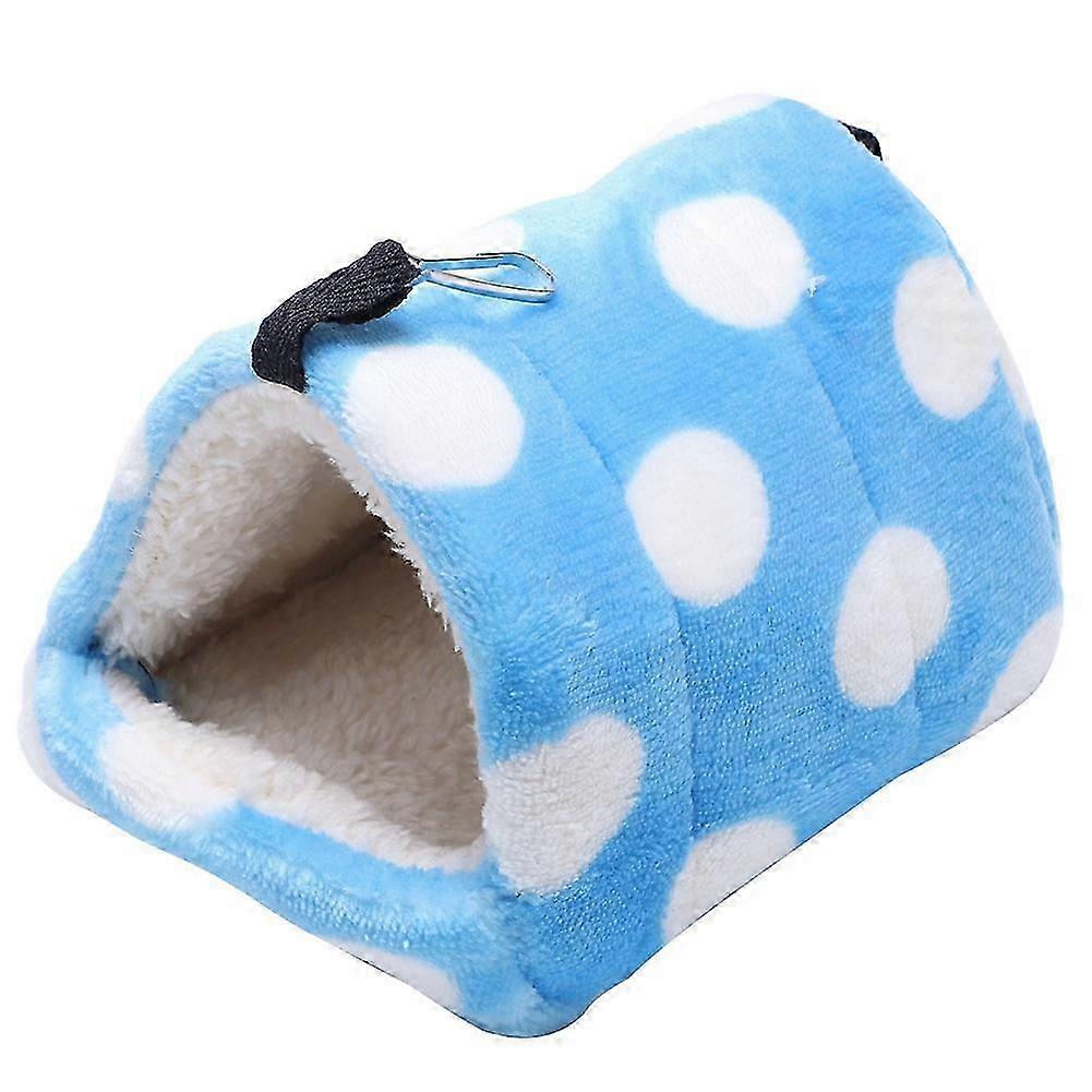 Small Pet Keep Warm Nest Hammock Soft Hanging Bed with Hook for Hamsterblue and white dot S