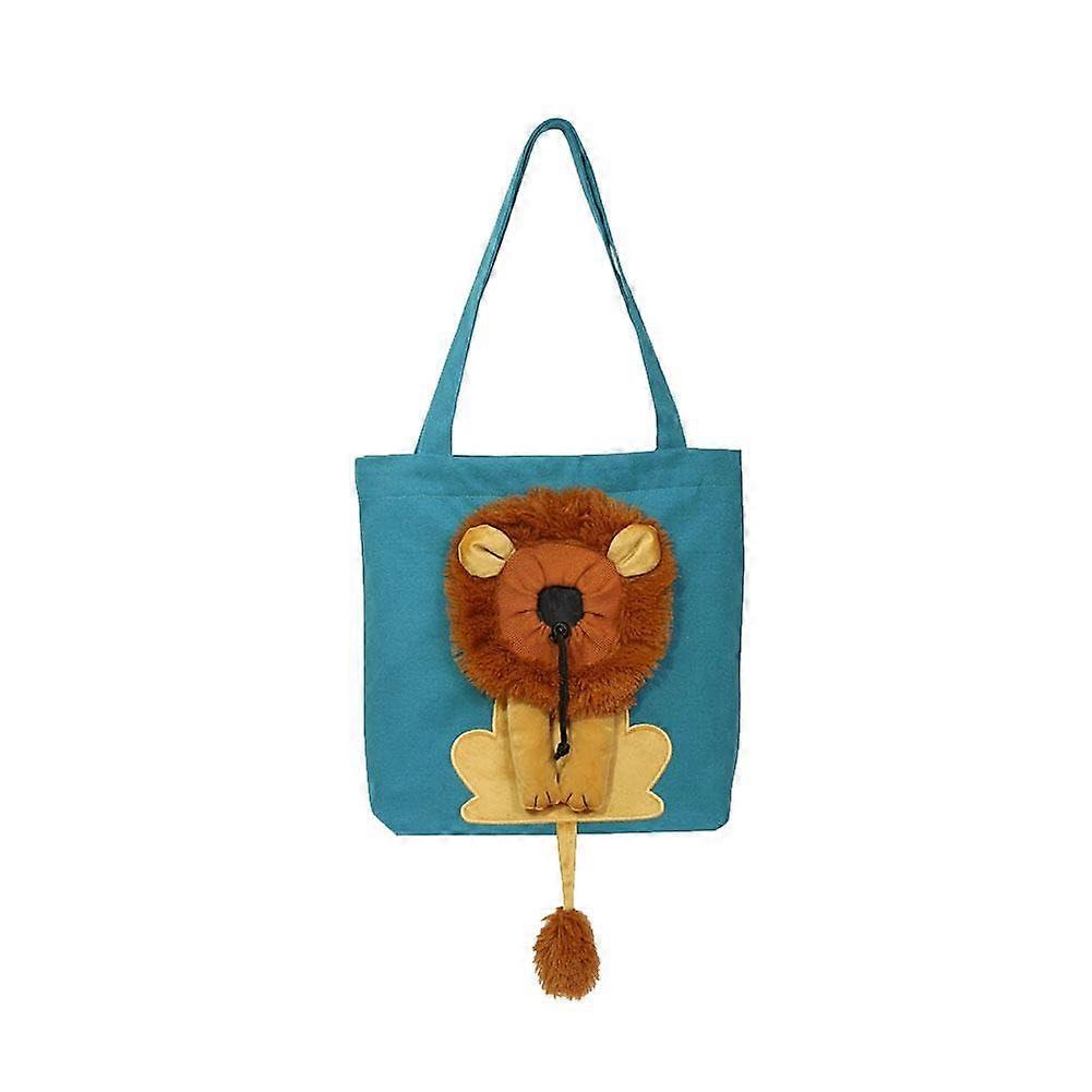Small Lion Bag Diagonal Cross Handbag Canvas Cartoon Women Pet Bag Kids Tote Blue