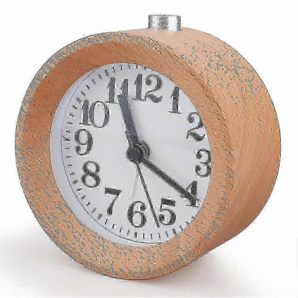 Small Round Wooden Alarm Clock, Handmade Analog Battery Operated Silent Clock with Gentle Wake Feature