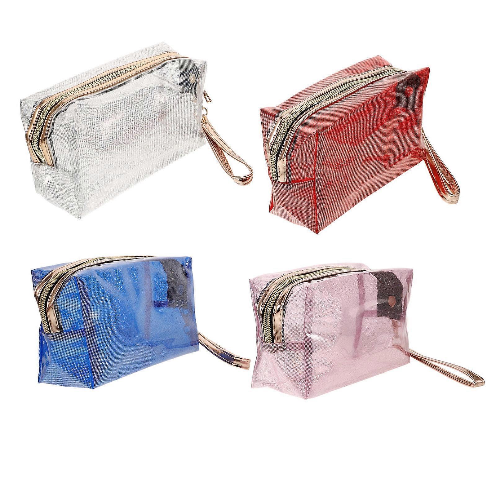 Small Makeup Case Organizer Bag Transparent Design Silver 4Pcs