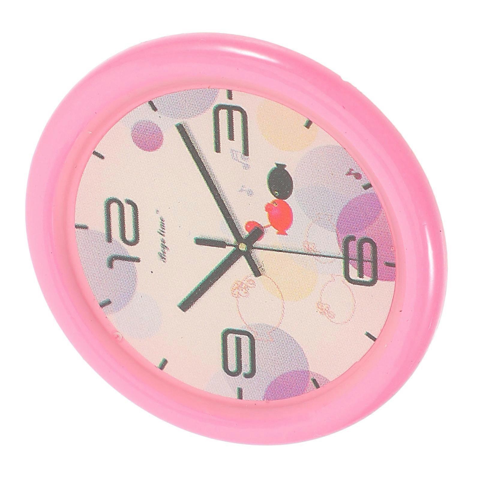 Small Wall Clock Model Doll House Supply Mini Modern Style Pink 3.30X3.30X0.60cm Resin Decoration 1Set