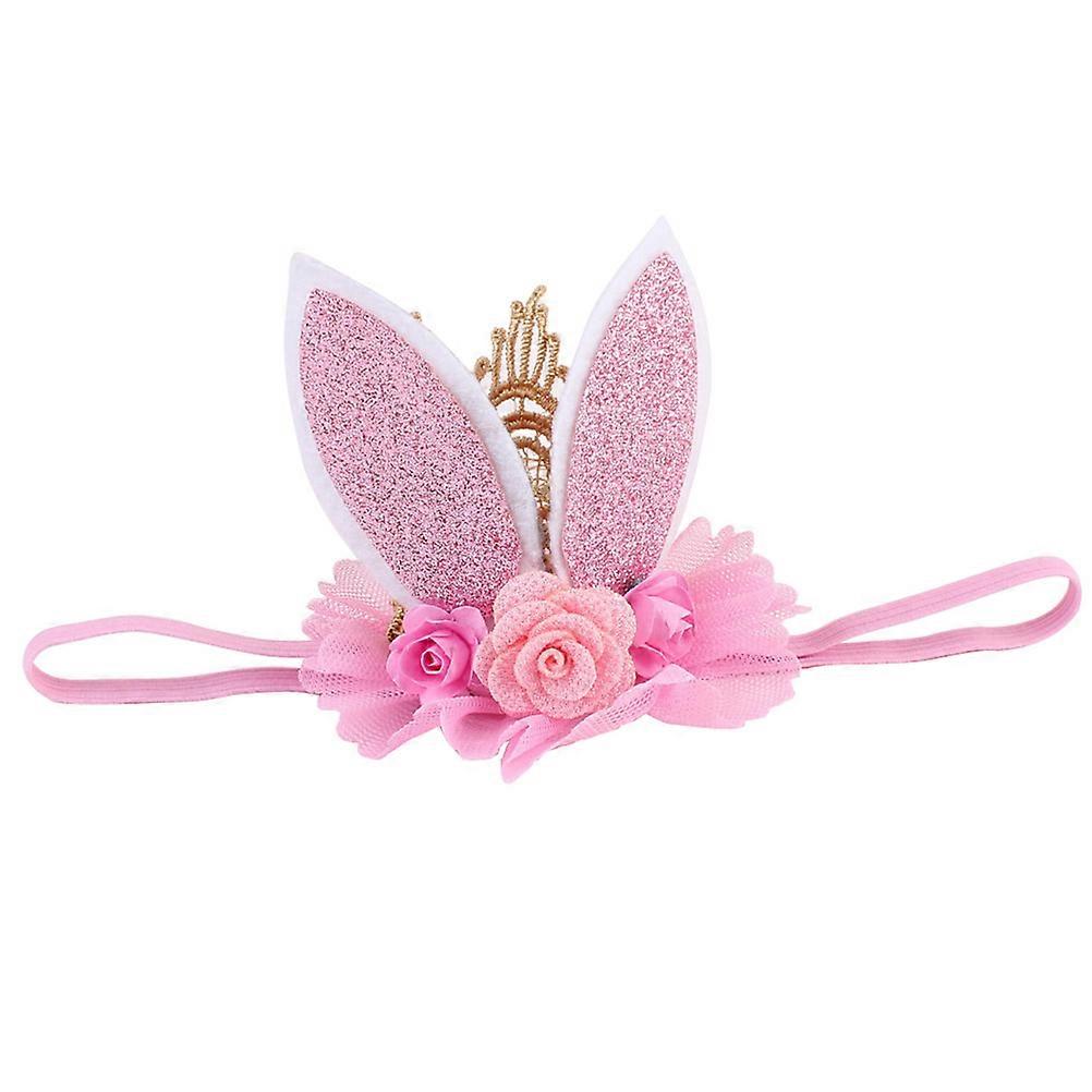 Rabbit Ears Crown Headwear For Little Girls Adorable Design Photo Props Light Pink 1Pcs