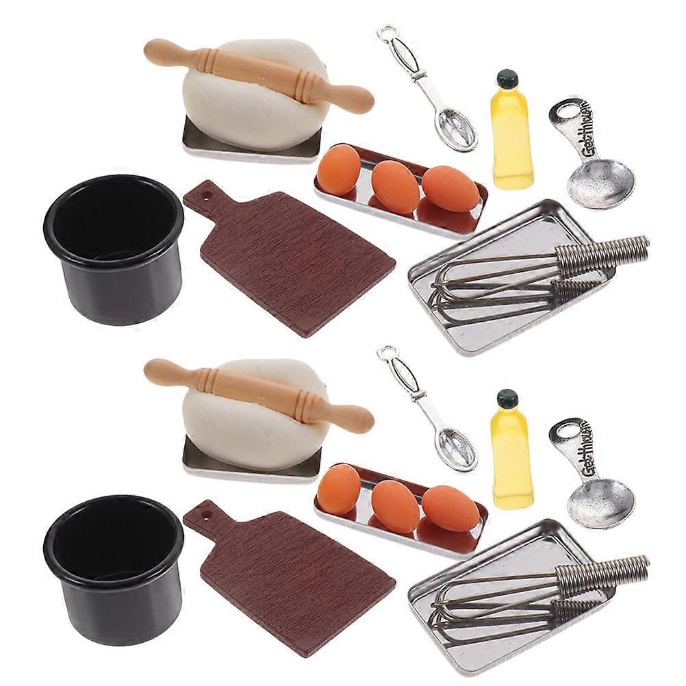 Miniature Kitchen Baking Tools for Tiny House Decor Realistic Wood Resin Plastic 2 Sets