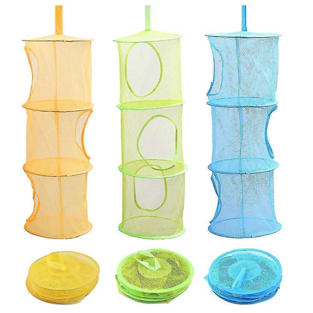 Mesh Hanging Storage Basket For Hanging Small Clothes(3 pieces, yellow, green, blue)