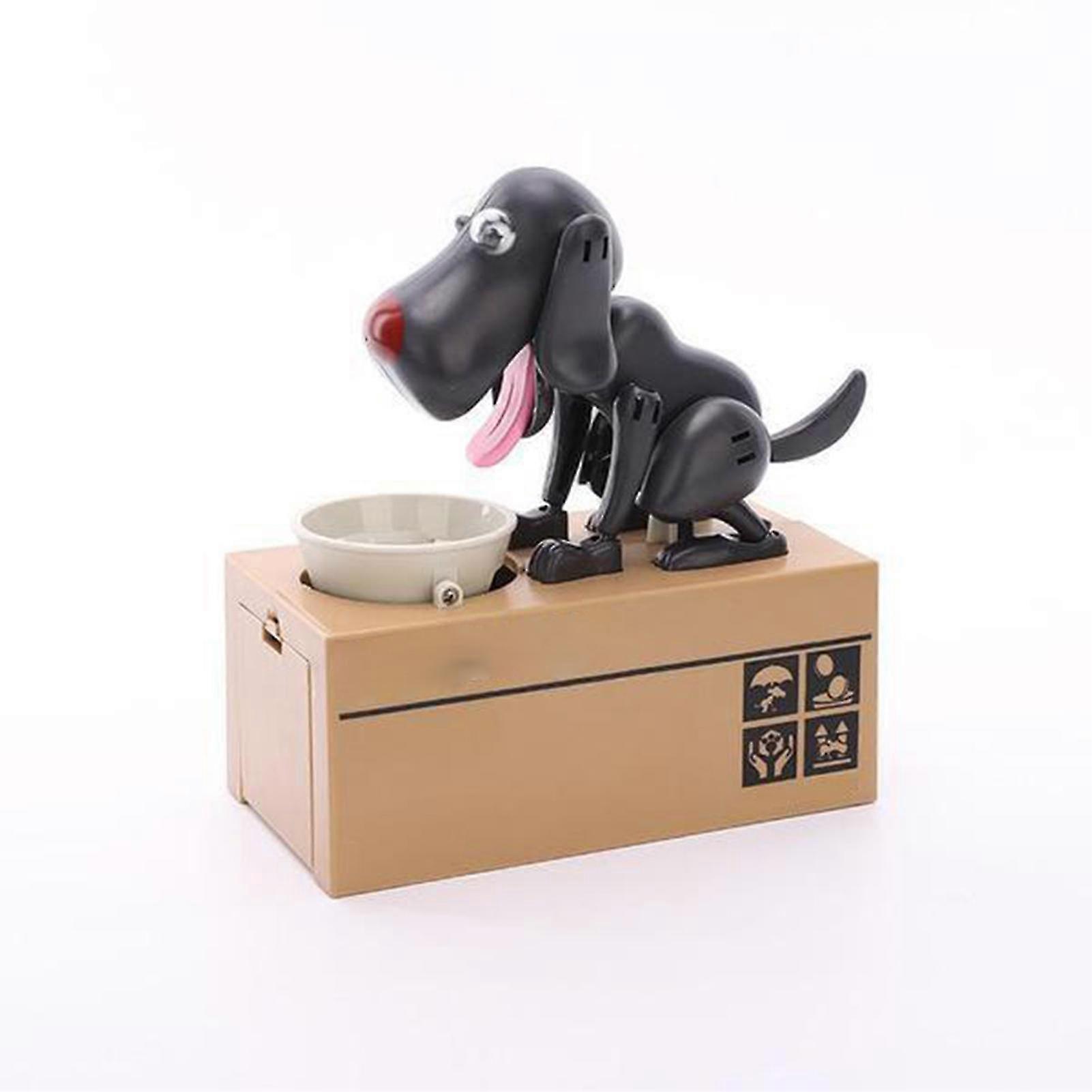 Little Dog Puggy Bank Battery Powered Robotic Coin Munching Toy Money Box Saving Money Coin Bank For-COLOR Black