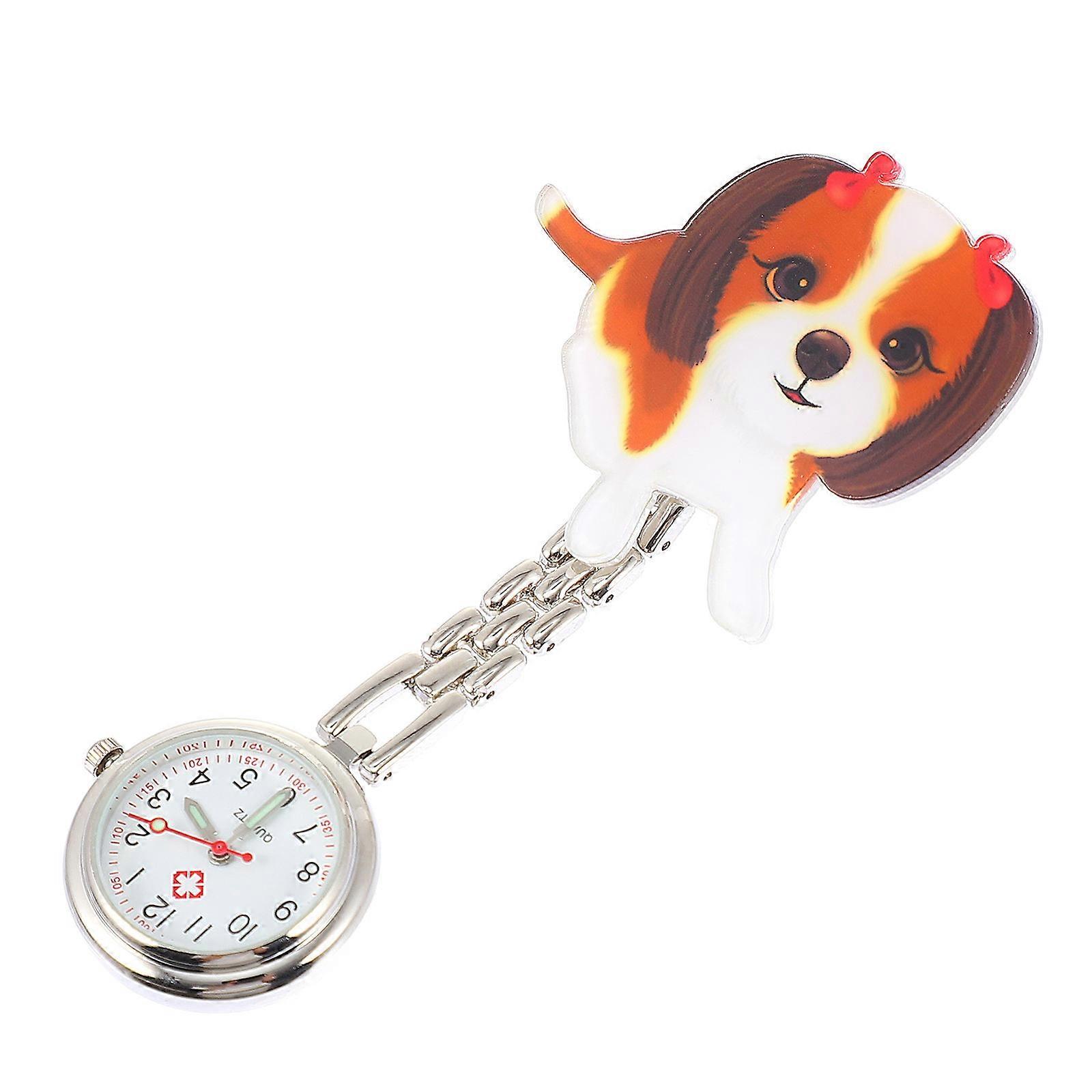 Little Dog Pocket Watch with Safety Clip Made of Stainless Steel and Alloy for Decor Assorted Color