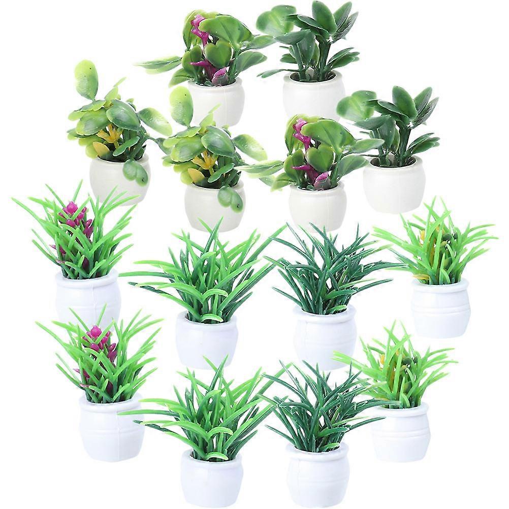 Tiny Bonsai Decor Simulated Bonsai Model Home Decoration 14Pcs White Plastic Mini Flowerpot Figurine