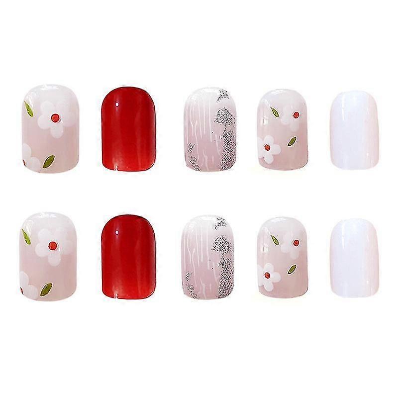 Short Square Fake Nails with Small Yellow Flowers DIY Art Tips