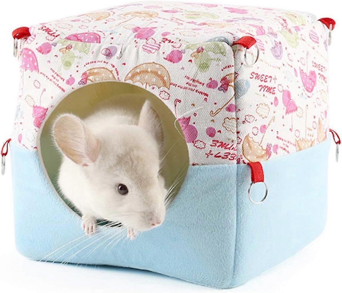 Small Animals Warm Plush Bed House, Chinchilla Hamster Cotton Nest Sofa, Hammock Hanging Swing Bed Cave (Blue)