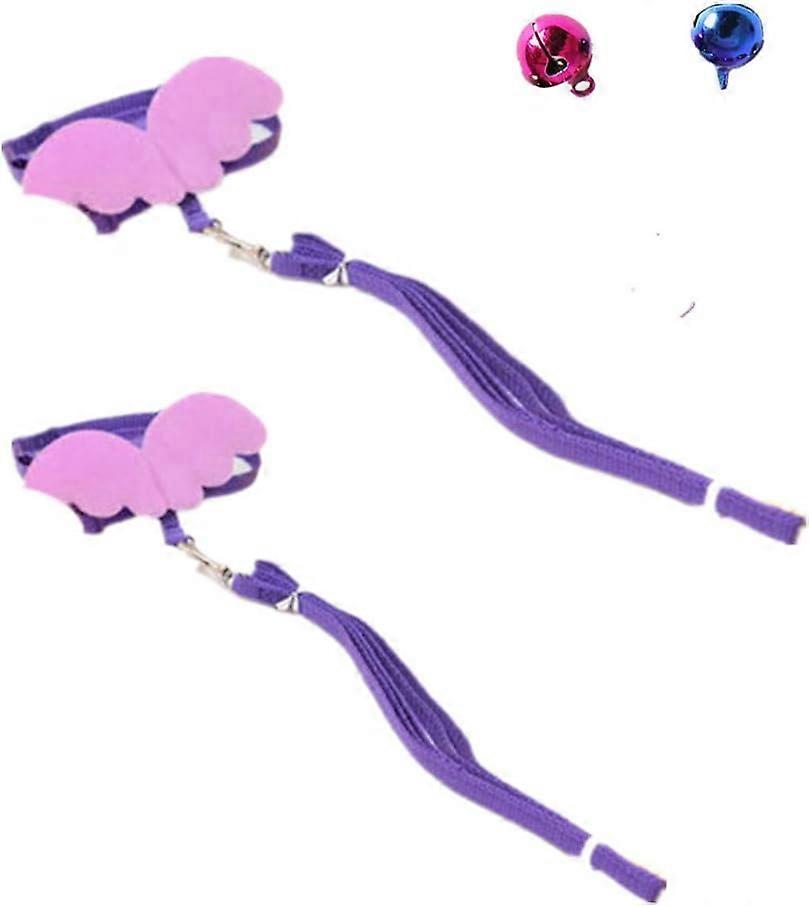 2 X Harness Leash with Adjustable Angle Wing Safe Bell for Small Size Ferret Rabbits (M: Chest: 30-50cm / 11.81-19.68", Purple)