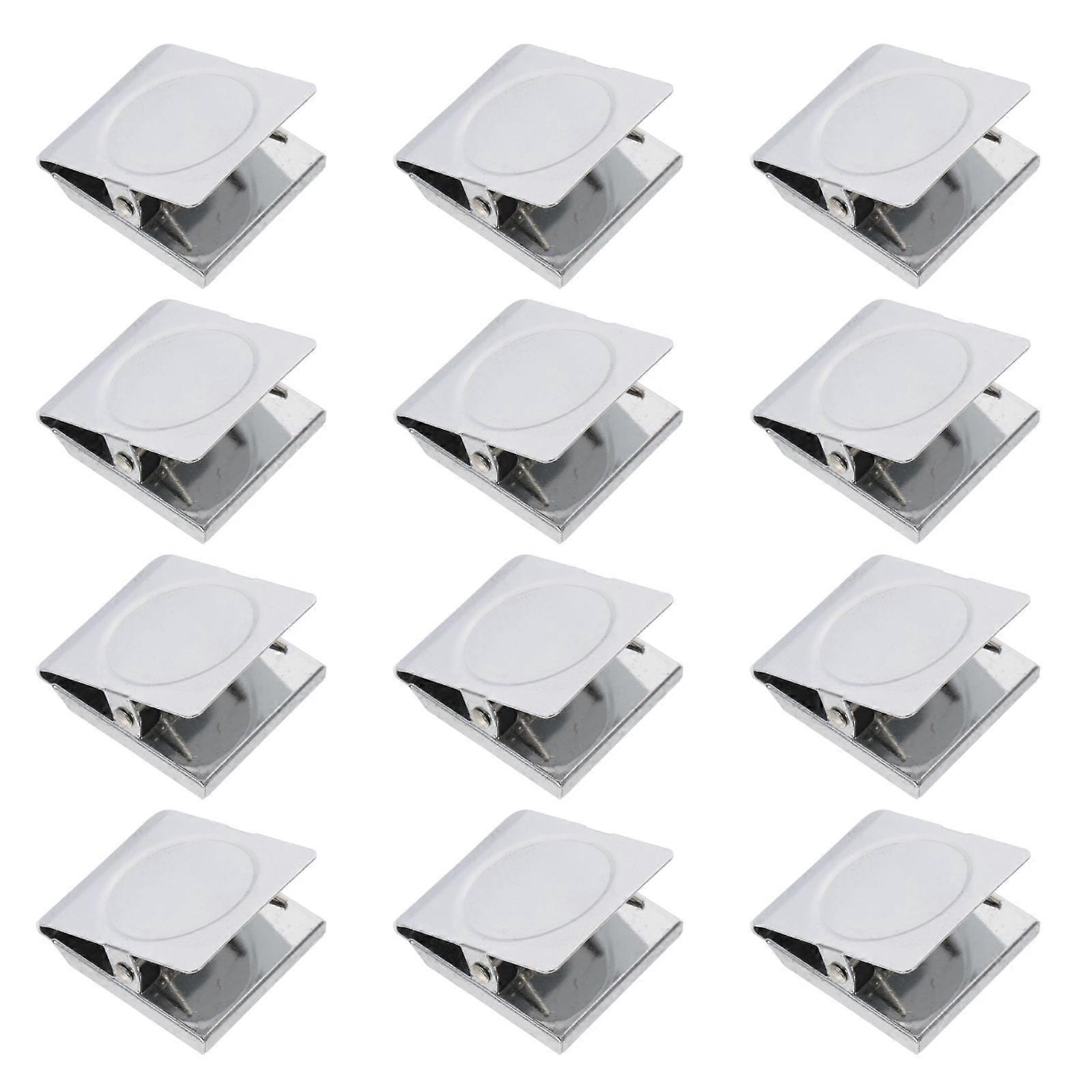 Small Fridge Magnets Magnetic Clip Memo Note Clip Silver 5.00X5.00X3.00CM For Hanging Photos Displaying Photos 12Pcs