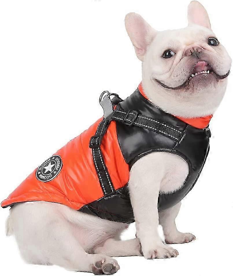 Classic Waterproof Jacket - A multi-purpose jacket made of high quality water resistant outer layer polyester membrane fabric, waterproof and windproof, protect your dog from bad weather and keep them dry, suitable for all types of dogs. Inner Layer Keep Warm DoggiteKit dog coat middle layer is made of 160g cotton provides a warm and comfy embrace to your lovely dog, don't worry about your dog's warmth even in the cold winter, enjoy your good outdoor interaction time with your dog. Double Reinforced Straps - integrated design of back traction, the webbing adopts double reinforced design for safe traction, more durable, can withstand greater pulling force, adds reflective elements, fashionable and beautiful to make night travel safer. Suitable For All Siz Dogs - This warm dog coat perfect for most dogs, suitable for small, medium, large breeds dogs, such as Teddy, Chihuahua, Beagle, Poodle, Bulldog, Schnauzer, Labrador, Golden Retriever, etc. great for indoor or outdoor activities in autumn and winter, for daily ues like walking, jogging, hiking. Warm Tips - To make pets more comfortable to wear, before making an order, please measure your pet's back chest size and compare with the size chart, If you have any problem when receiving the dog jacket, Please contact us in time, we will solve your problems within 24 hours. Hope you have a great winter with your furry friend! Product Description Waterproof Dog Winter Coat for Small Medium Large Dogs This 2 in 1 winter multifunctional jacket dog coat comes with high quality waterproof outer polyester film fabric, which makes waterproof and windproof more secure, filled with high quality cotton, built-in safety harness, no need to buy separately, make the dog more comfortable while saving you time to make outdoor activities more enjoyable. There are 5 sizes S, M, L, XL, XXL suitable for small, medium and large dogs. Specification Size: S, M, L, XL, XXL Color: White, Pink, Orange Features: Waterproof, Windproof Material: Polyester, Cotton Occasion: Indoor, Outdoor