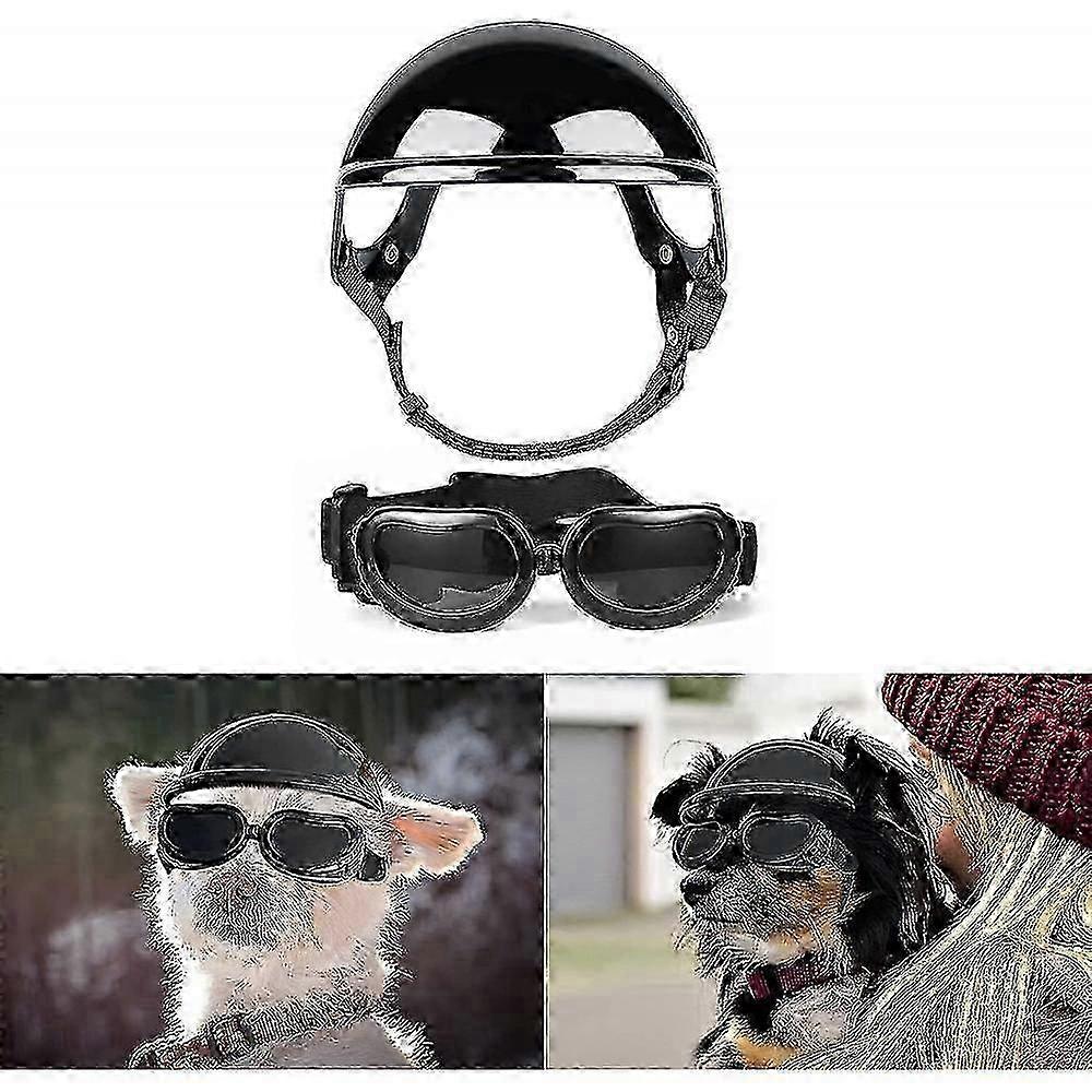 Small Breed Dog Sunglasses and Helmet, UV Protection Goggles, Windproof Motorcycle Helmet with Earhole