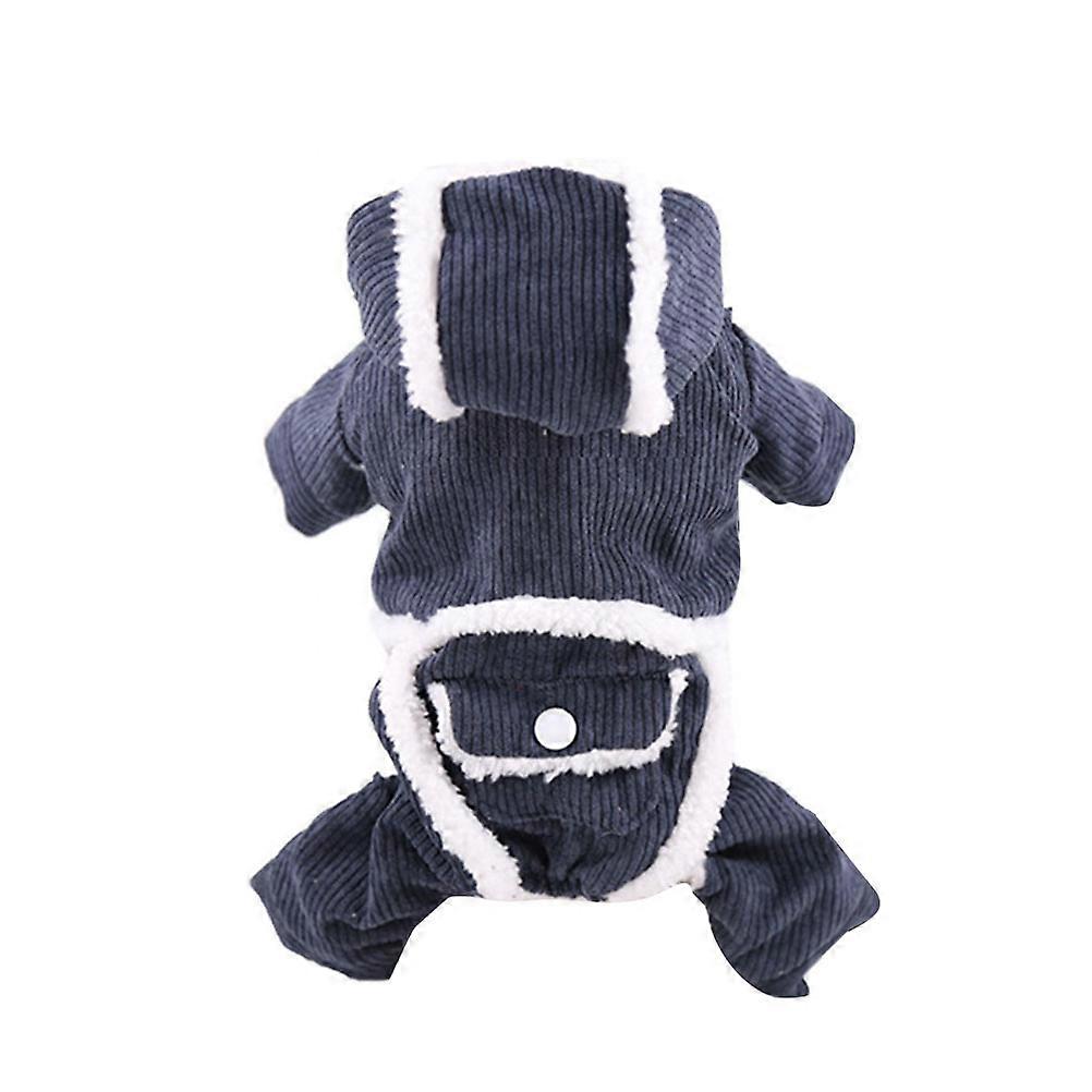 Pet Dog Clothes For Small Dogs Double Layer Four Feet Pet Cloth Warm Corduroy Coat Thicken Design Denim Blue Size S 1Pcs