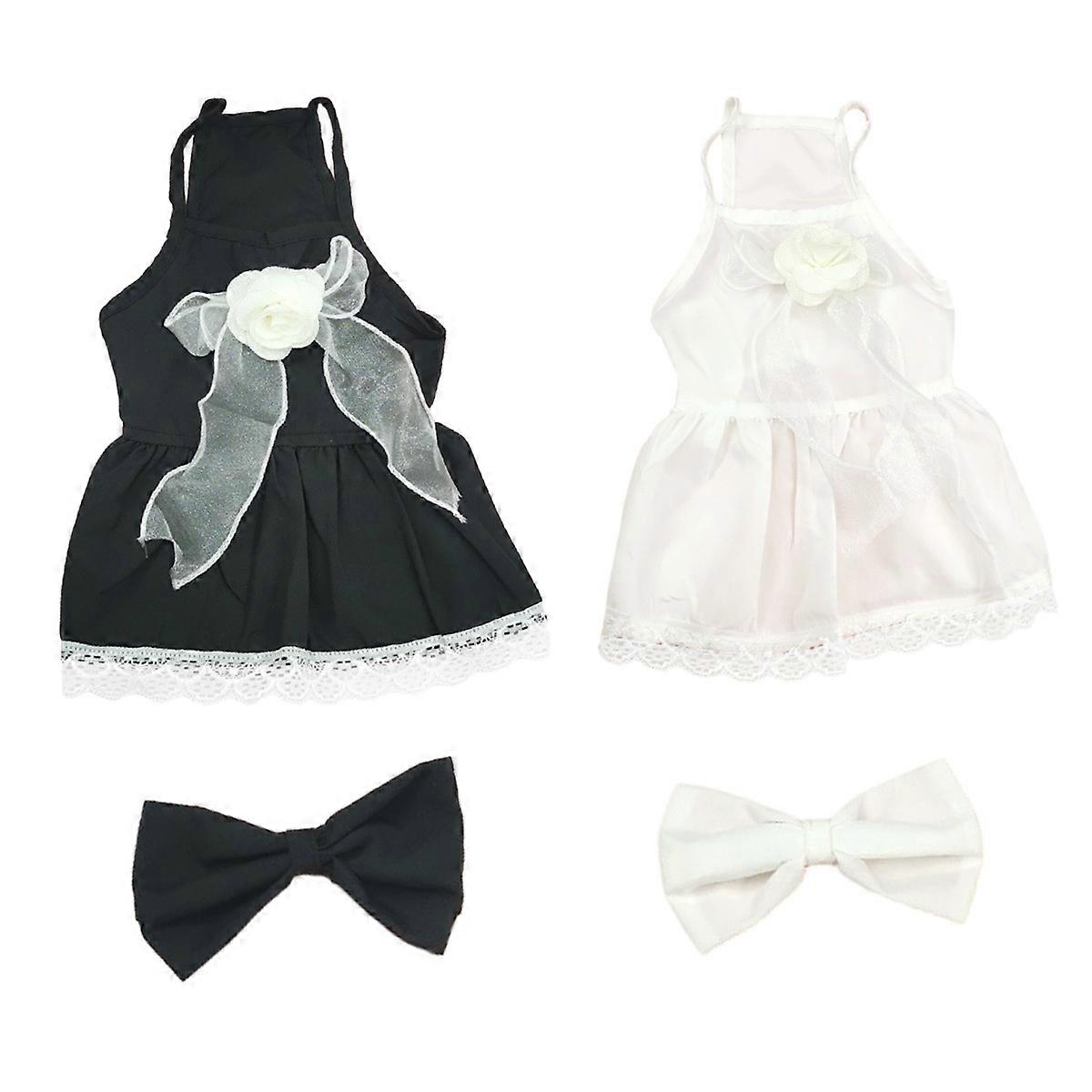 Dog Dress Set for Small Dogs Floral Bow Tie Girl Puppy Dress Breathable Cute Princess Dog Dresses Spring Summer Pet Cat Clothes Skirt(L)