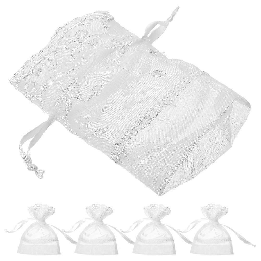 Small Item Storage Drawstring Pouch Five-Petal Flower Shape Travel Use Organza Material 5Pcs