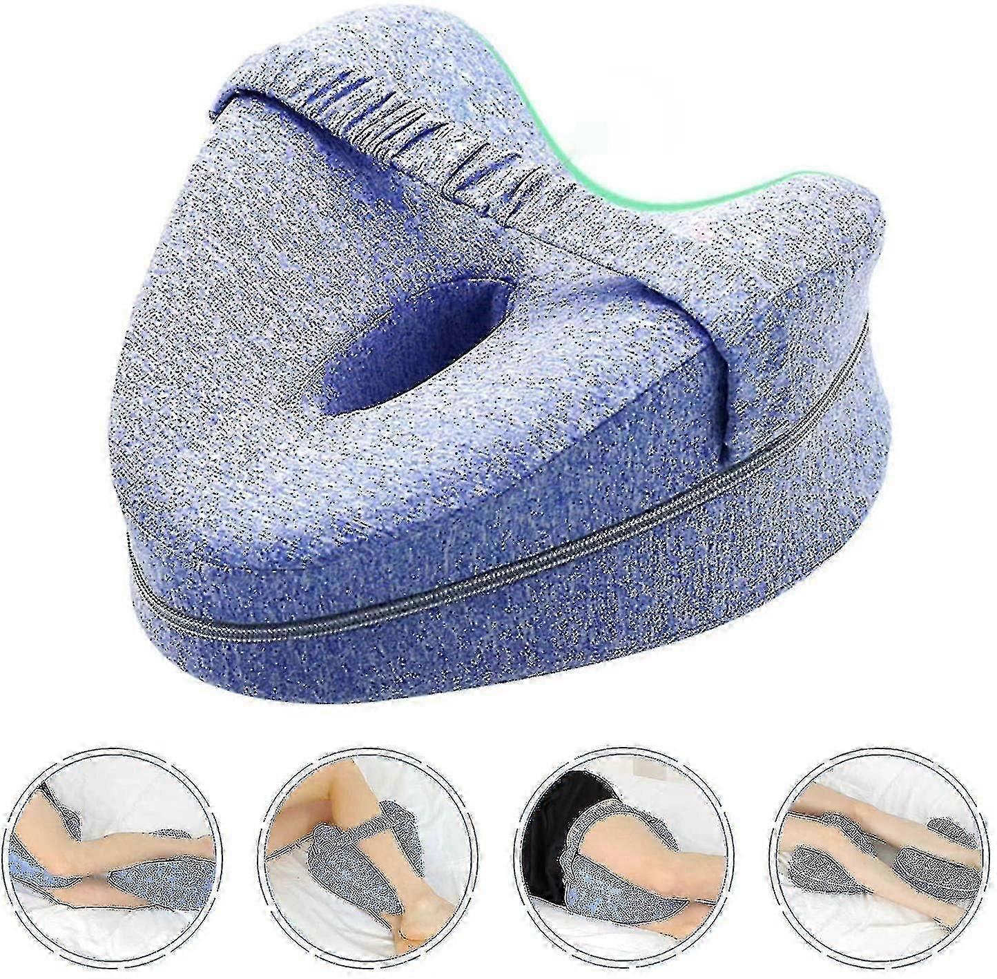 About this product:Orthopedic knee braces provide excellent support and can significantly improve spinal alignment, helping to relieve back, hips, legs, knees, arthritis and sciatica, as well as improving blood circulation in the both legs.Elastic band design: The leg cushion maintains the best sleeping posture all night long, and it won't suddenly fall or slip. Use the right method to relieve pain in the back, hips, knees and ankles. Simply put it between the thighs or below the knees to help relieve your specific pain.It can be used as a knee spreader during pregnancy or after recovery. It is also convenient to use while traveling. This memory foam cotton knee pillow has a washable cover for easy cleaning.Advanced High: High Density Memory Foam: high quality durable memory foam, comfortable for a long time, better than other pillows. It will not flatten over time.VENTED MEMORY FOAM PILLOW: Unlike traditional memory foam pillows which are designed to absorb your body heat in order to compress, the ventilated air holes in the memory foam promote the circulation of the air throughout the night.Product Colour:Blue.Features:Material: Polyurethane.Interior: cotton with shape memory.Memory foam, slow rebound material.Dimensions: approximately 25 x 23 x 13 cm.Weight: approx. 320 g.Elastic strap:The knee pad is designed with an elastic strap. You don't need to worry about the knee pad falling off your leg while you sleep.High density memory foam:Our pillow is made of premium breathable memory foam. It can provide lasting comfort for a good sleep.Content:1 cushion for the legs.