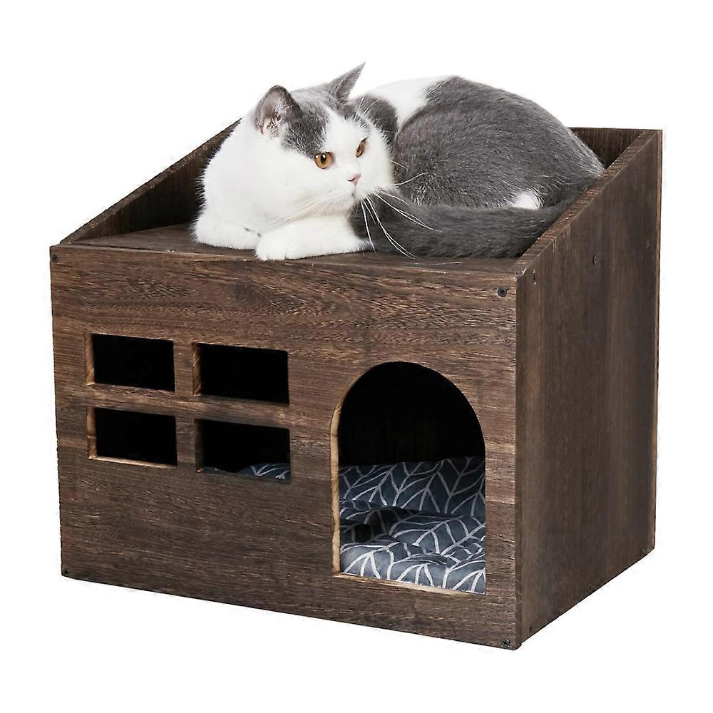 Constructed From Robust Paulownia Wood This Cat Bed Is Built For Durability And Long-Lasting Use. The Environmentally Friendly Material Ensures That It Is Safe For Your Kitten While Being Strong Enough To Endure Daily Use. The Bed Includes A Soft Polyester Cushion Pad That Offers Warmth And Comfort And Its Removable Design Makes Cleaning Straightforward. The Small Front Allows For Interaction With Your Cat While They Enjoy Their Cozy Retreat. Assembly Is Hassle-Free With All Necessary Accessories And Instructions Provided Making It A Practical Addition To Any Room With Its Compact Dimensions Of 18.62 Inches In Length 13.78 Inches In Width And 16.5 Inches In Height.
