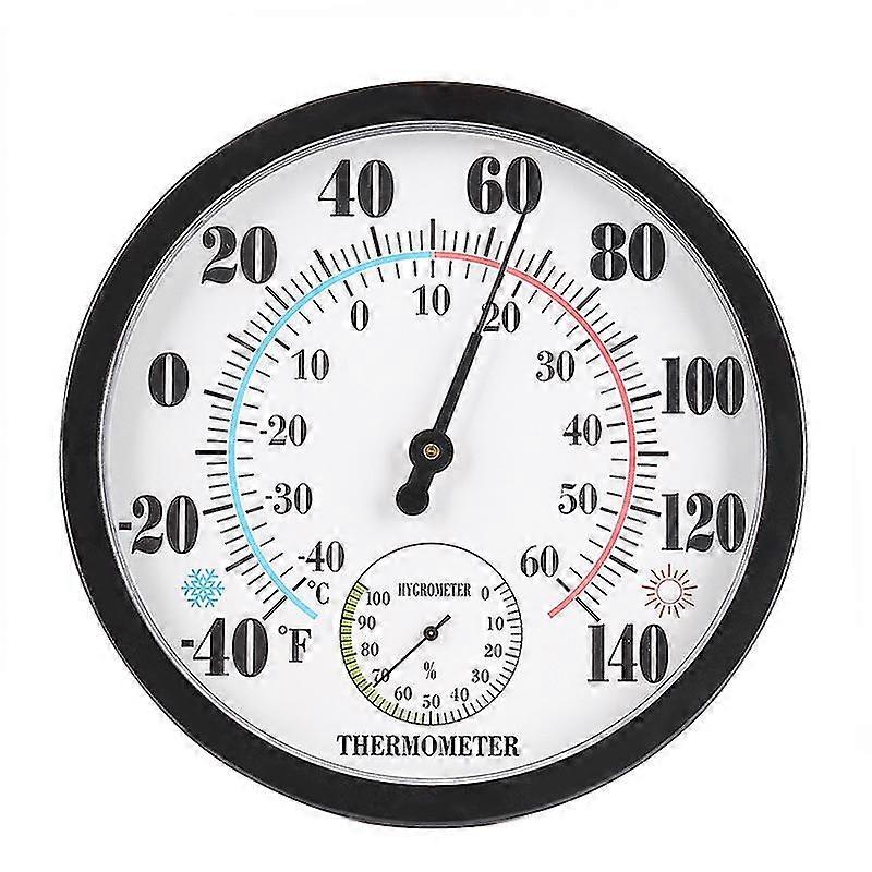 Automatic calibration: The outdoor thermometer does not need batteries, has a built-in temperature and humidity sensor, and automatically calibrates within 3 hours, and the pointer will automatically match the local temperature. Adaptable: Wall thermometer temperature range from -40 to 60C, -40 to 140F, both Celsius and Fahrenheit, humidity range from 0 to 100% RH, suitable for all weathers and climates. Wide Application: The large thermometer is the perfect addition to any occasion, the holes in the back allow you to easily hang it in greenhouses, warehouses, baby rooms, bedrooms, offices, warehouses, laboratories, balconies, gardens, patios, anywhere you want. Note: If your outside thermometer is not accurate, you can put it in the refrigerator for two hours and let it calibrate automatically Color: WhiteWeight: 0.3kgSize: 25*25*3.8cm