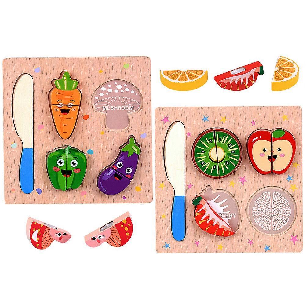 Learning Toys For Toddlers With Indoor Play In Assorted Color 2 Sets Wooden Cutting Puzzles