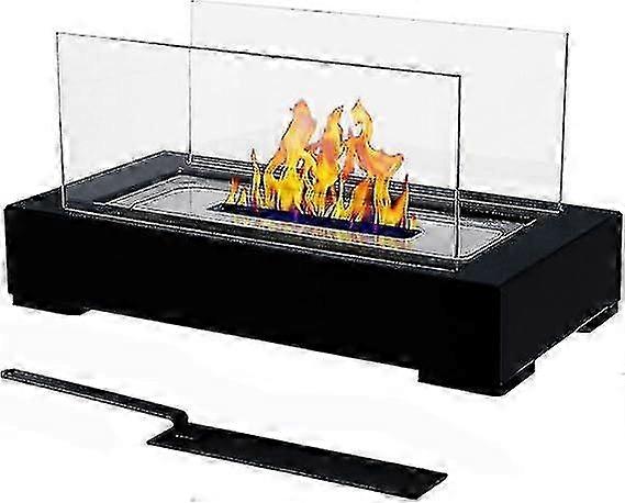 Square Tabletop Alcohol Fireplace for Indoor and Outdoor Use, Minimalist Black Portable Metal Design for Real Fire Enjoyment