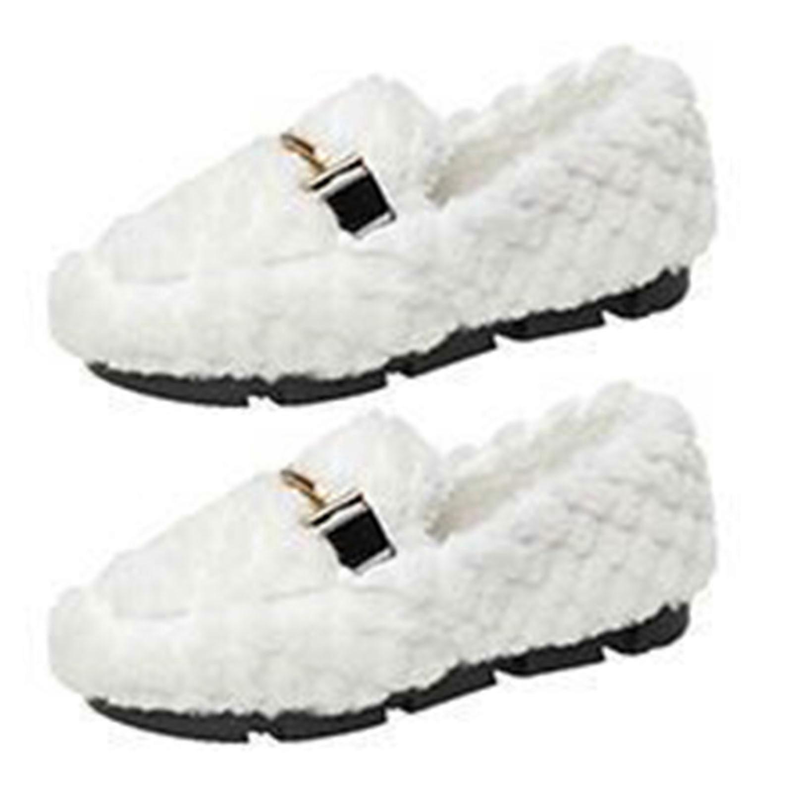 Indoor Suede Shoes Plush Fluffy Warm Keeping Anti Slip Flat Bottom Shoes for Home Outdoor White 39