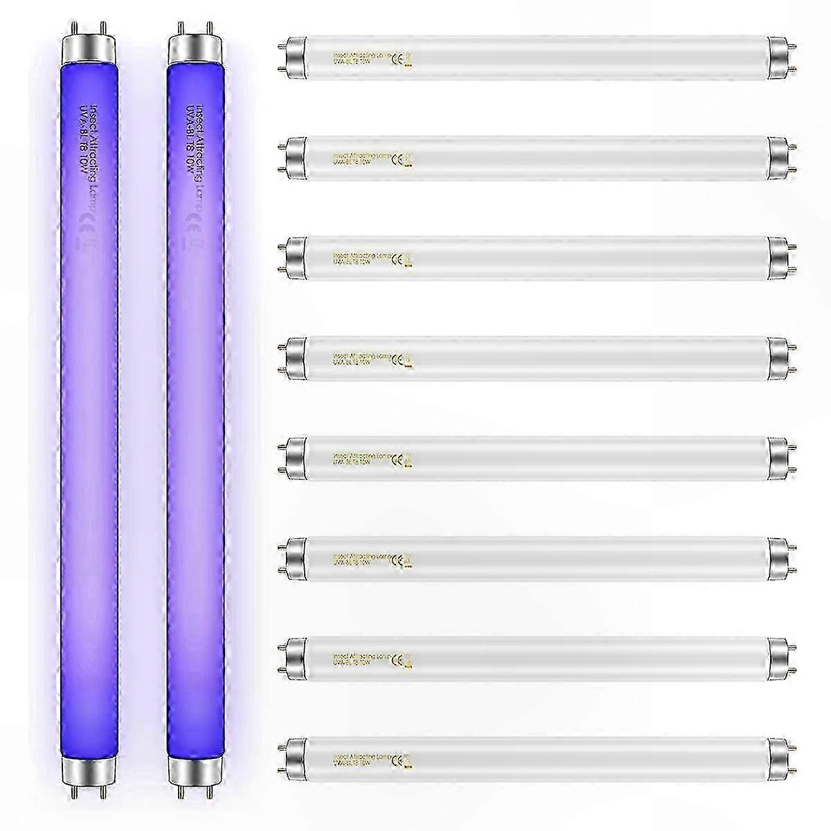 10-Pack 10W Replacement Bulbs for Indoor Bug Zappers, T8 F10W 13-Inch Light Tubes