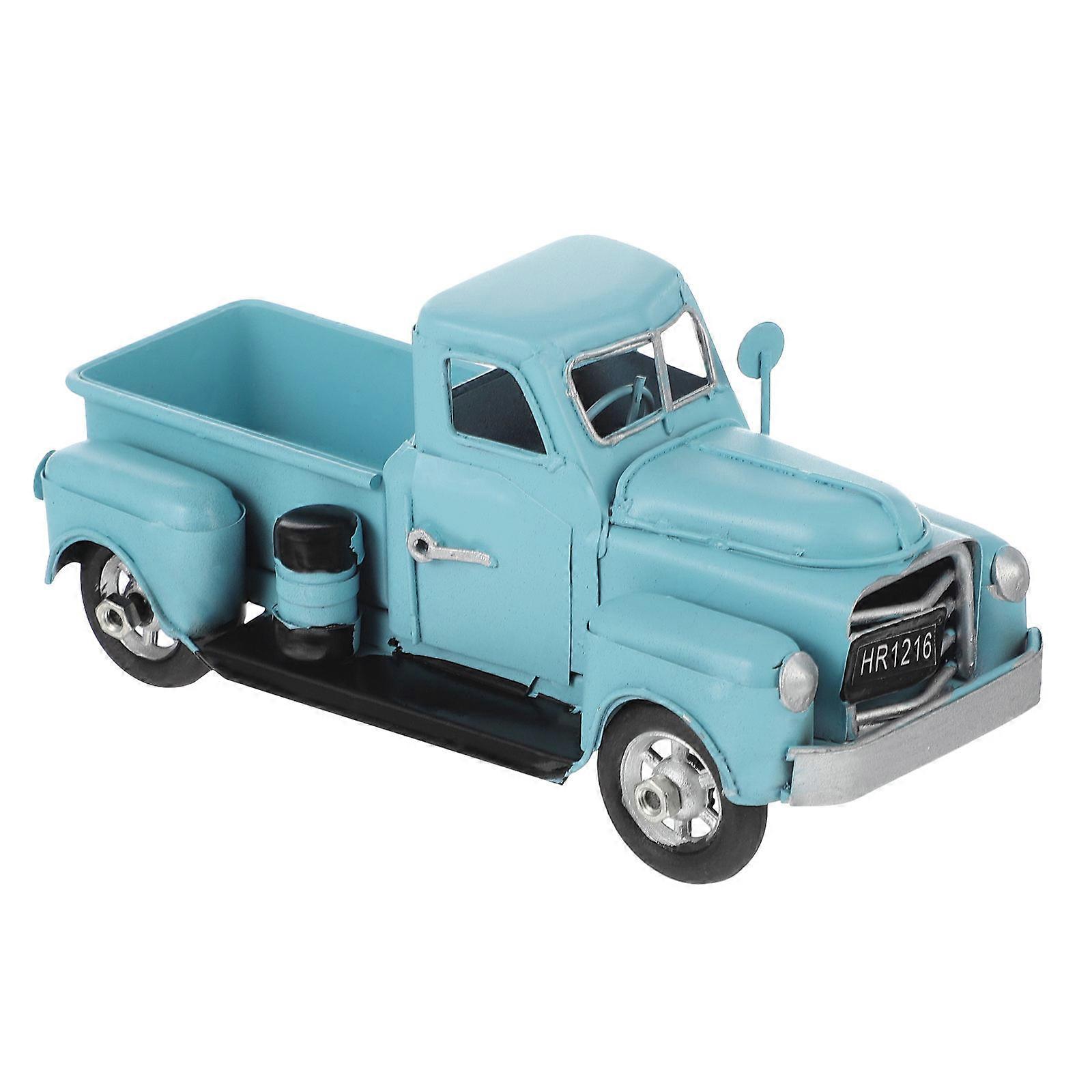 Vintage Blue Iron Car Model for Decoration with Classic Truck Design Perfect for Indoor Outdoor Use 7 Inch
