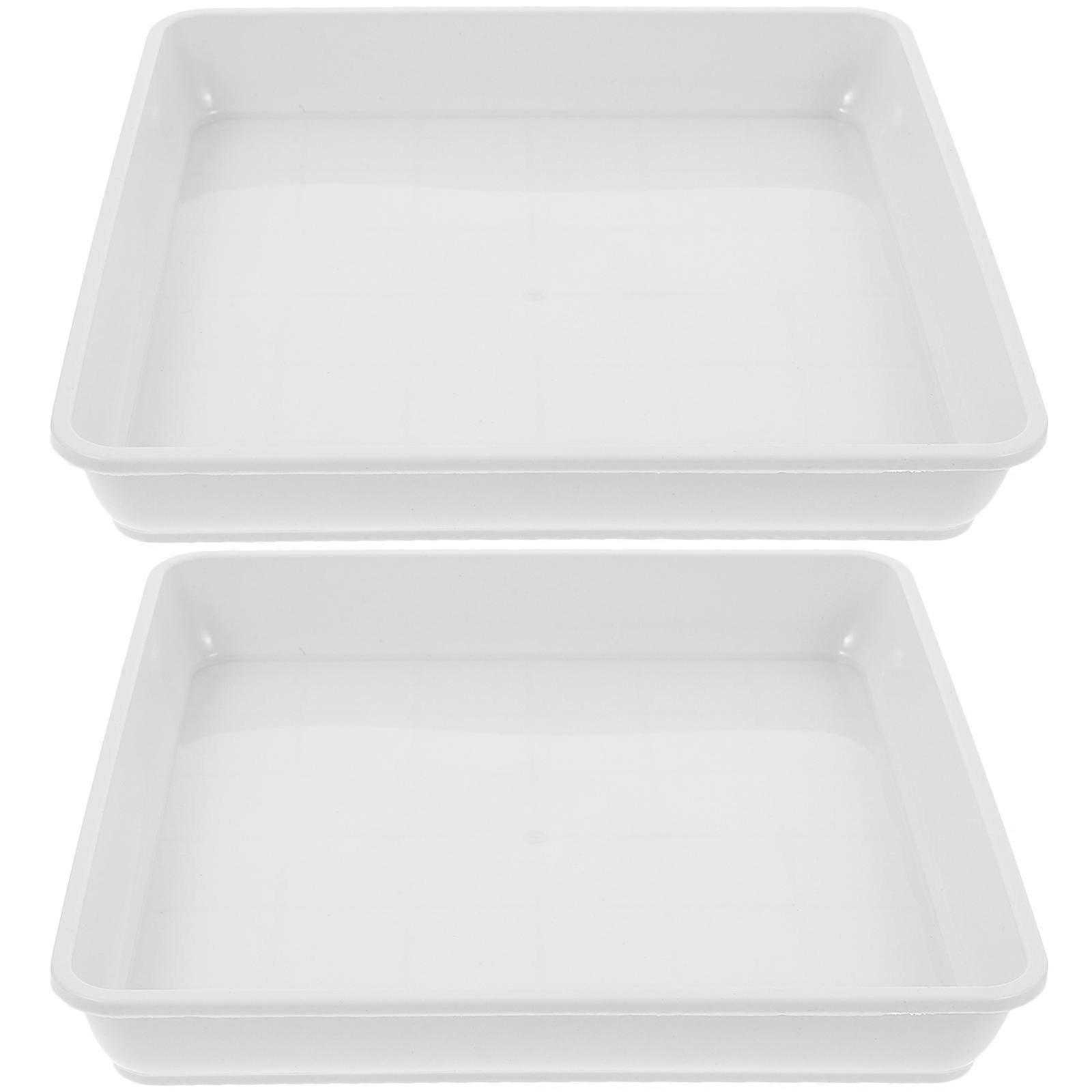 2pcs Square Plastic Plant Saucers with Slip Resistant Base for Indoor/Outdoor Succulent Pots, Minimalist White Drip Trays for Garden, Home, and