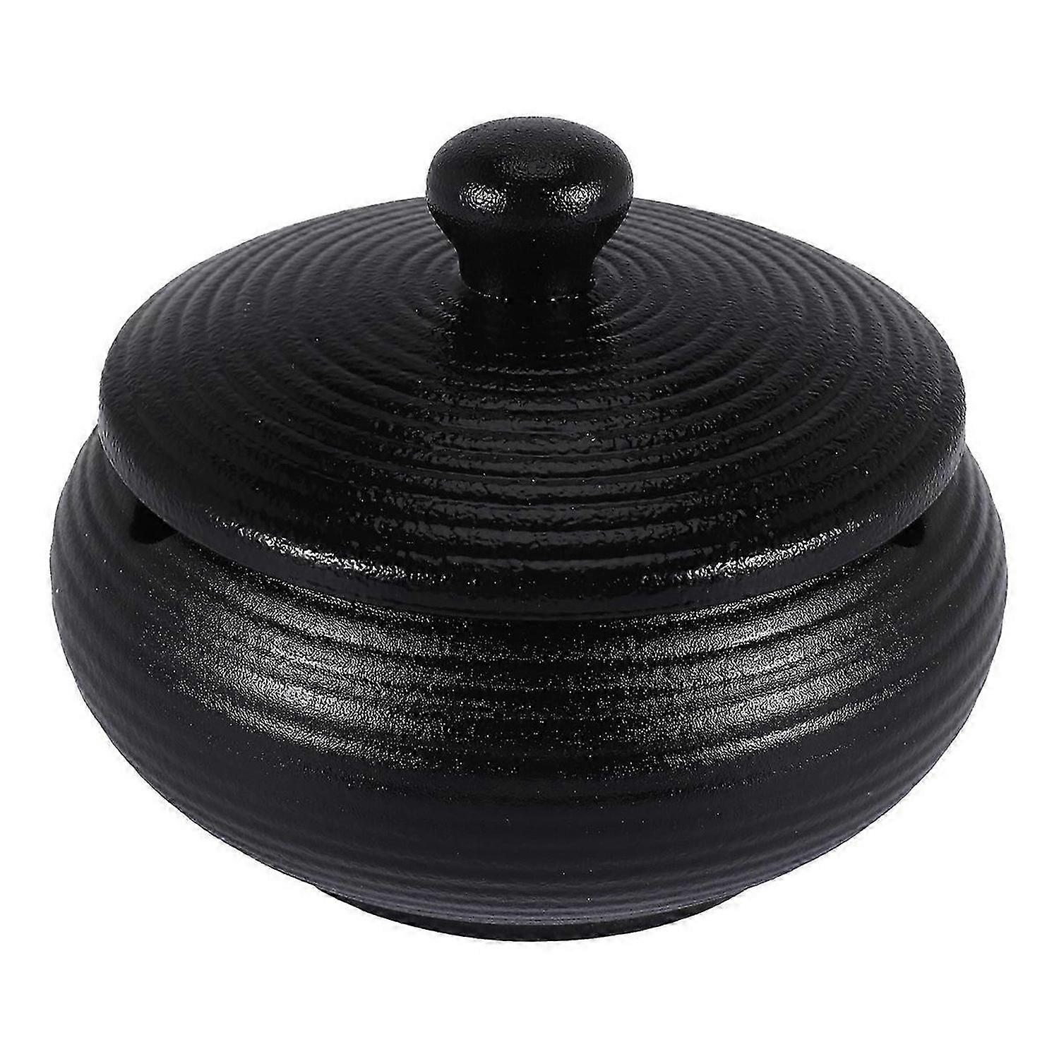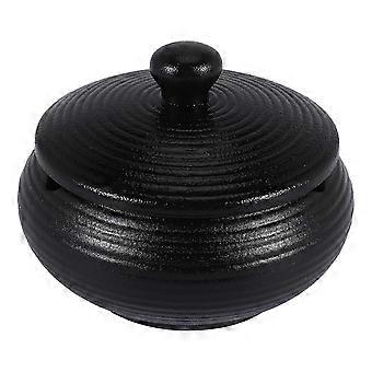 Ceramic Ashtray with Windproof Lid for Indoor Outdoor Use -Black