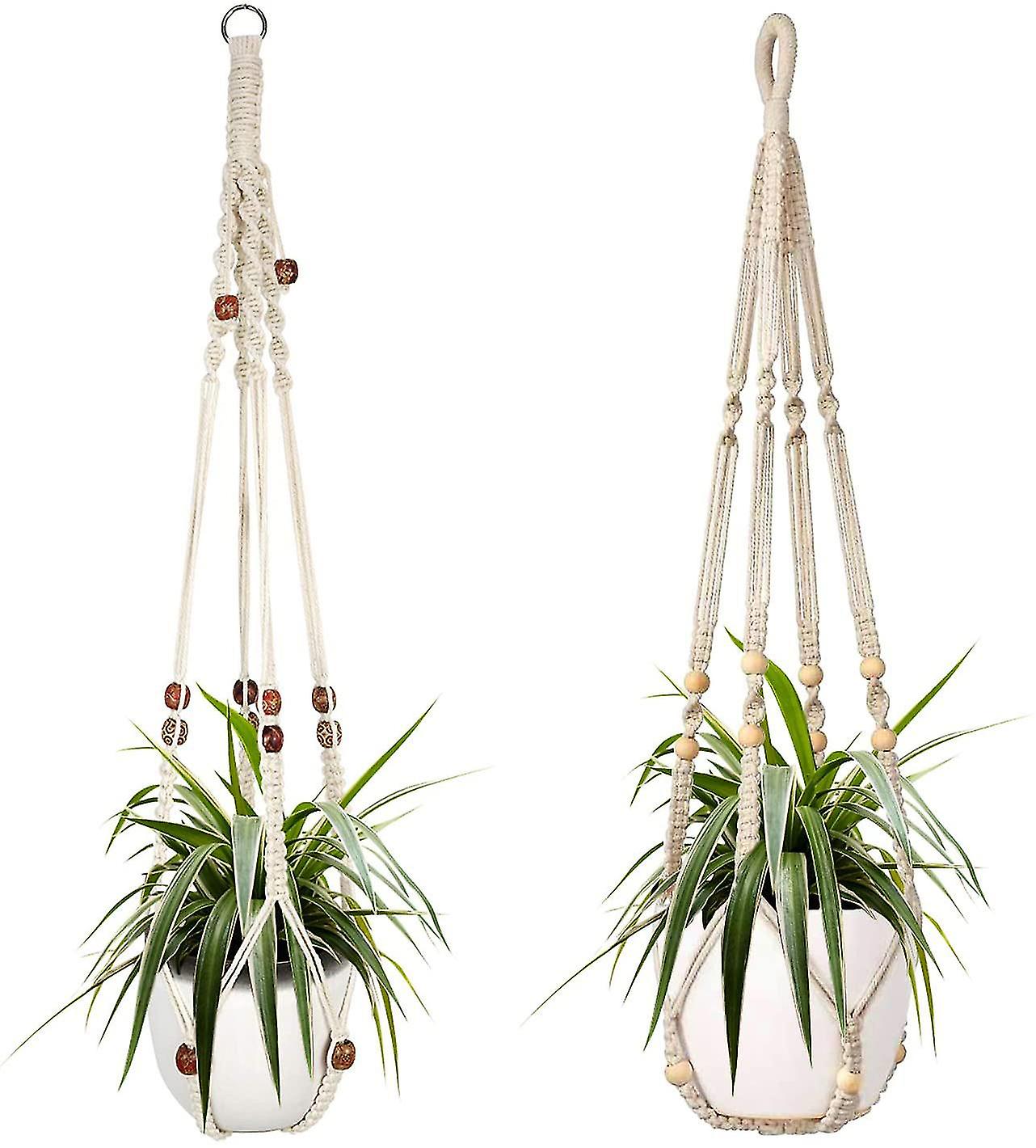 Set Of 2 Macrame Hanging Baskets Cotton Rope Hanging Basket Flower Pot Plant Holder Hanger For Indoor Outdoor Ceilings