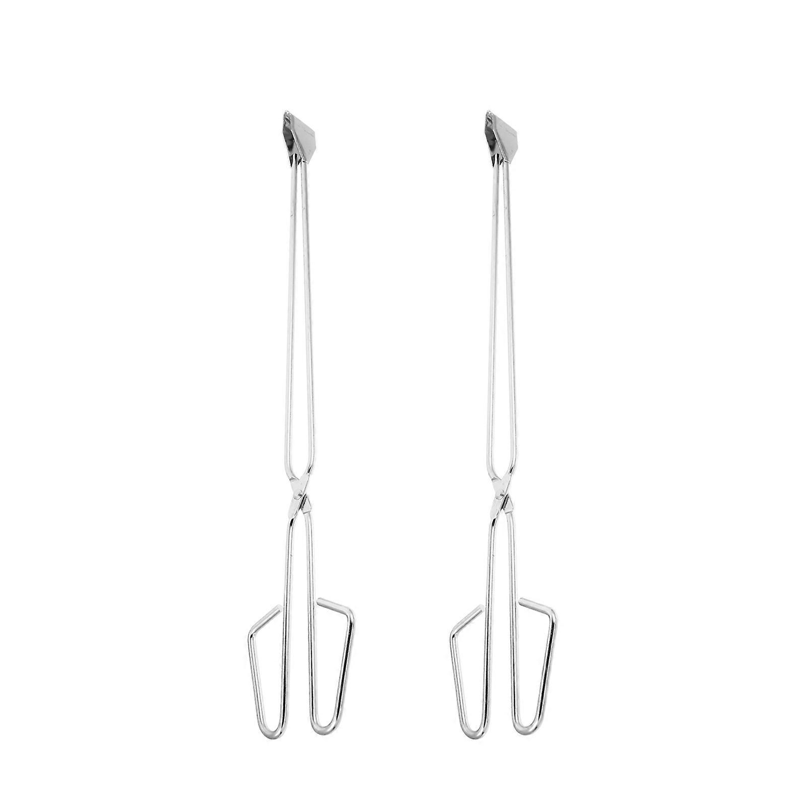 Fire Tong Heavy Duty Tongs for Indoor Fireplace Outdoor Backyard Fire Pit Silver Steel Long Tweezers 2Pcs